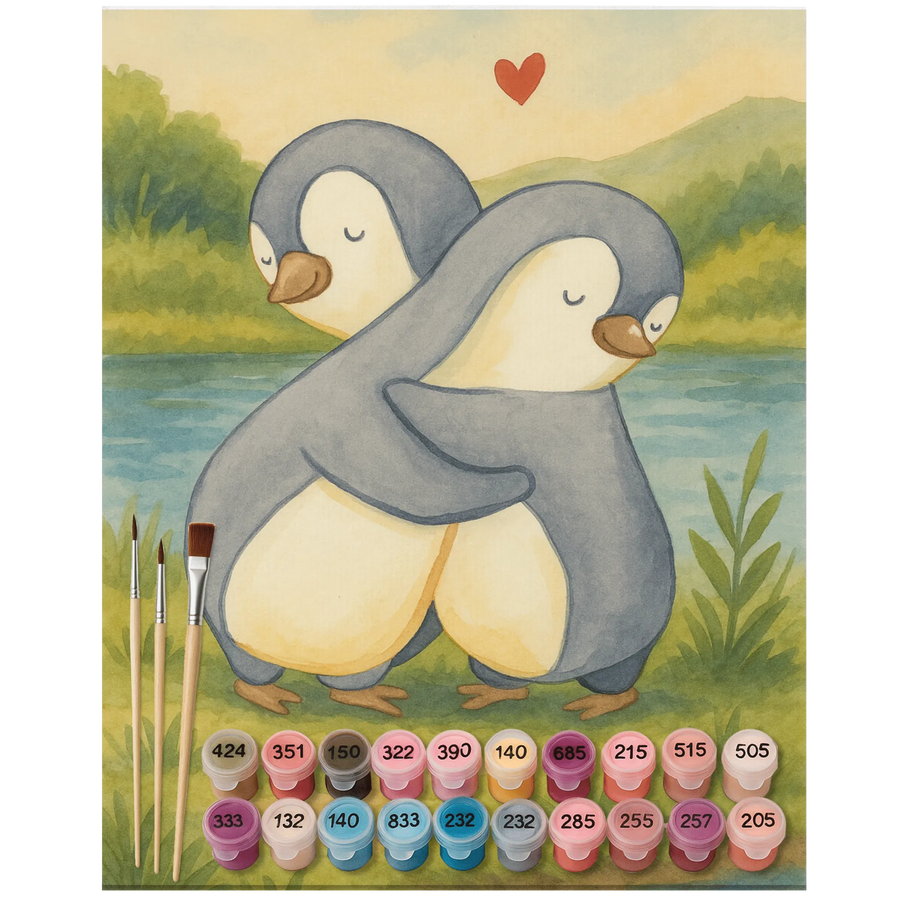 Paint by Numbers penguins Cuddle Design Bastelidee, Malen nach Zahlen, DIY, Kunstwerk, Baseln, Künstler, Ausmalbild, Kreativität, Malen, Liebe, Partner, Freund, Freundin, Ehemann, Ehefrau, Heiraten, Verlobung, Heiratsantrag, Liebesgeschenk, Jahrestag, Hocheitstag, Liebesbeweis, Hochzeitstag, Valentinstag, Geschenk für Frauen, für Ehemann, Geschenk für Partner, für Männer, Mitbringsel, Geschenk für Freundin