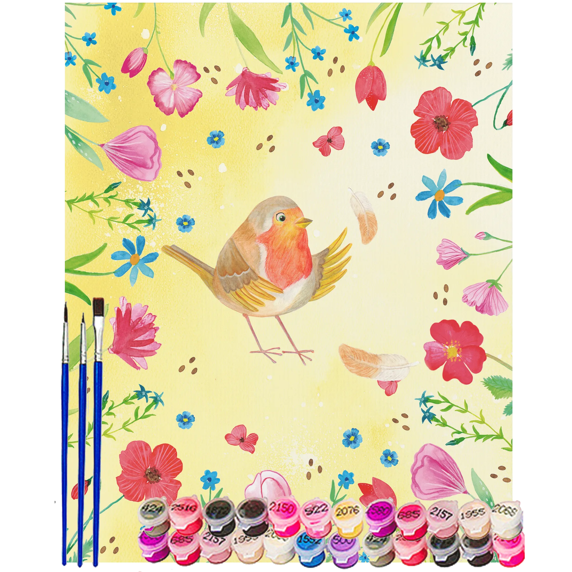 Each set includes high-quality acrylic paints and durable brushes, giving you the freedom to bring this adorable robin to life in its full glory.