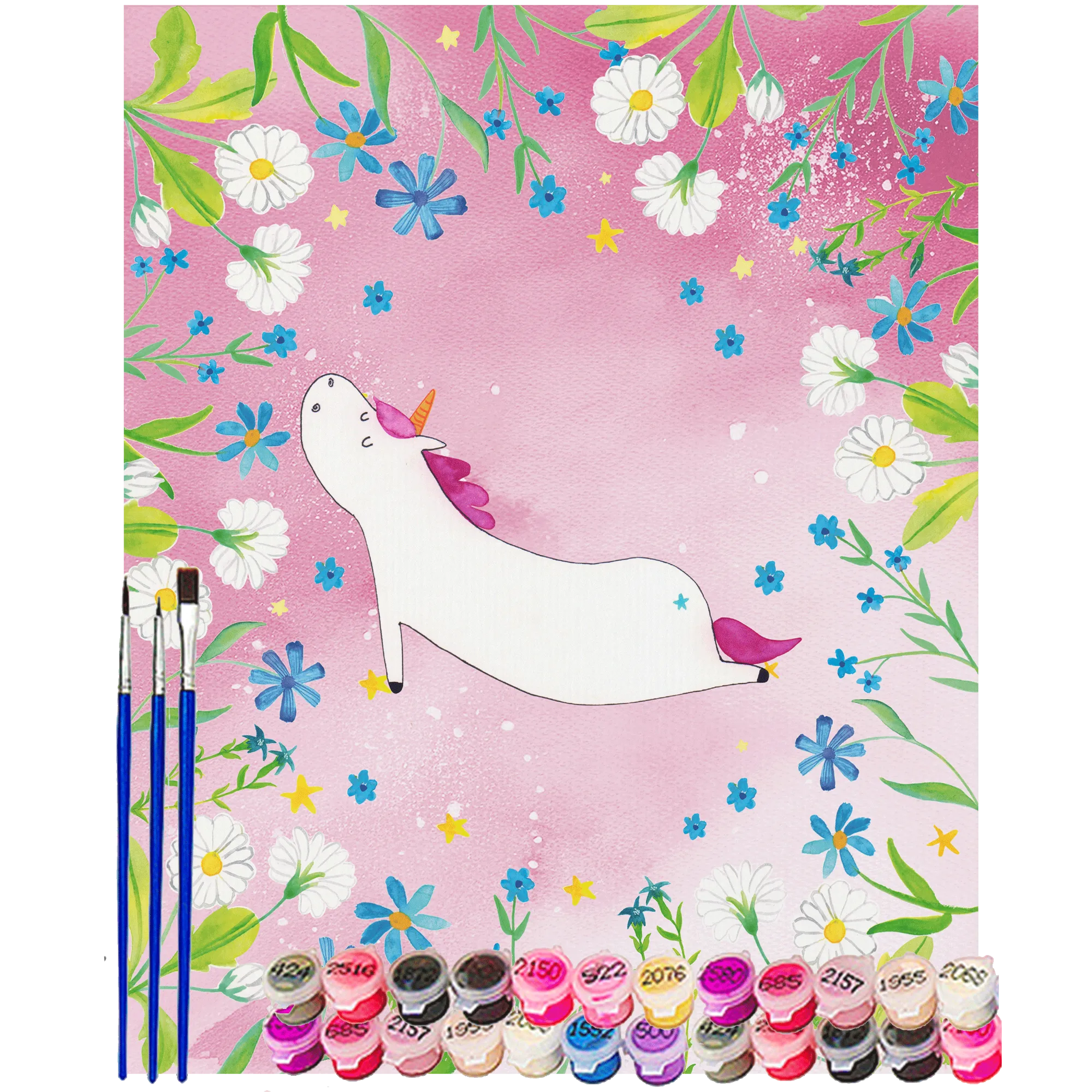 Du liebst es, Farben sprudeln zu lassen und mit kreativen Projekten deiner Phantasie freien Lauf zu lassen? Dann ist unser Malen nach Zahlen Set mit dem bezaubernden Motiv "Einhorn Yoga" aus der exklusiven Einhorn-Kollektion genau das Richtige für dich!