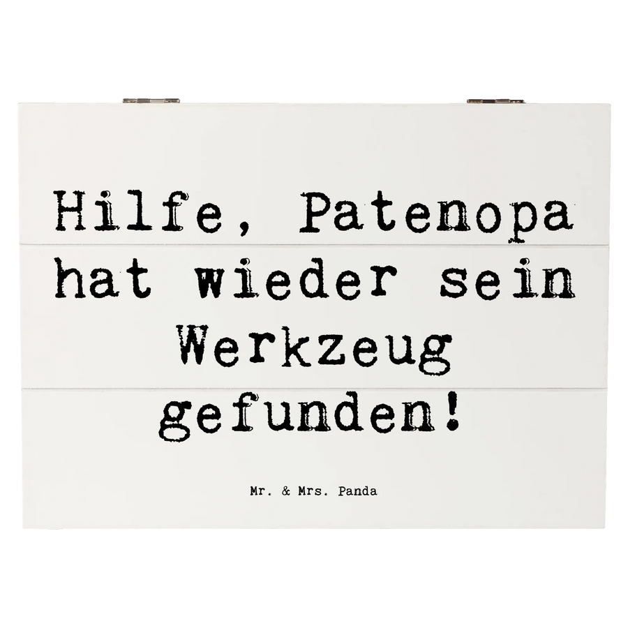 Wooden chest Saying Hilfe, Patenopa hat wieder sein Werkzeug gefunden! - 25 x 18 cm - White