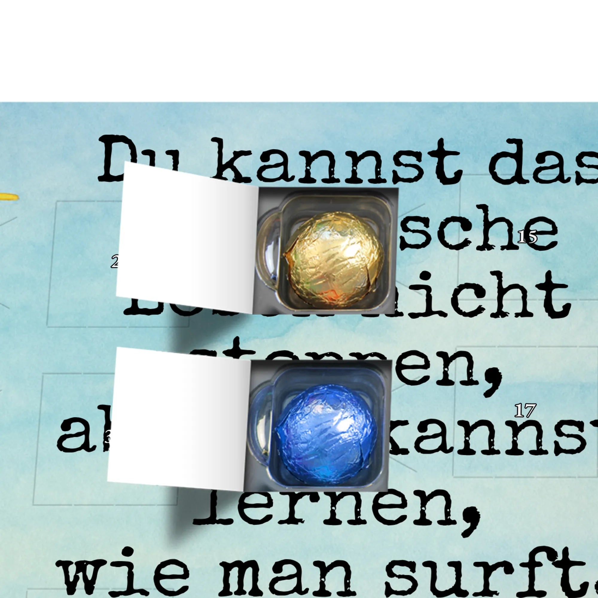 Entdecke unseren liebevoll gestalteten Schoko Adventskalender mit dem fröhlichen Motiv „Pinguin Surfer“ aus der Pinguin - Kollektion. Der coole Pinguin reitet auf den Wellen, trägt Sonnenbrille und motiviert mit dem Spruch: „Du kannst das stürmische Leben nicht stoppen, aber du kannst lernen, wie man surft.“ Dieser Weihnachtskalender Schokolade verbindet lebensfrohe Illustration und süße Vorfreude.