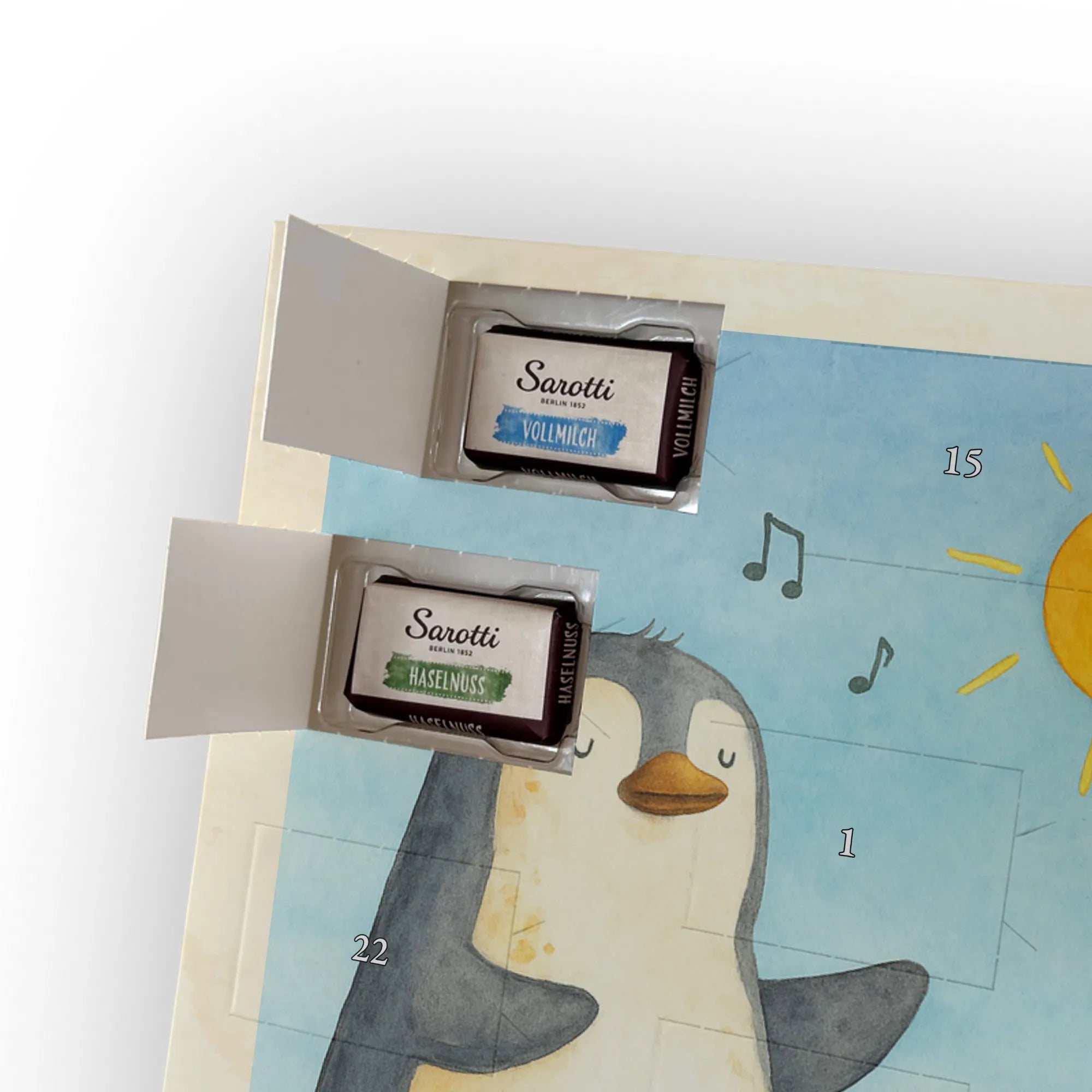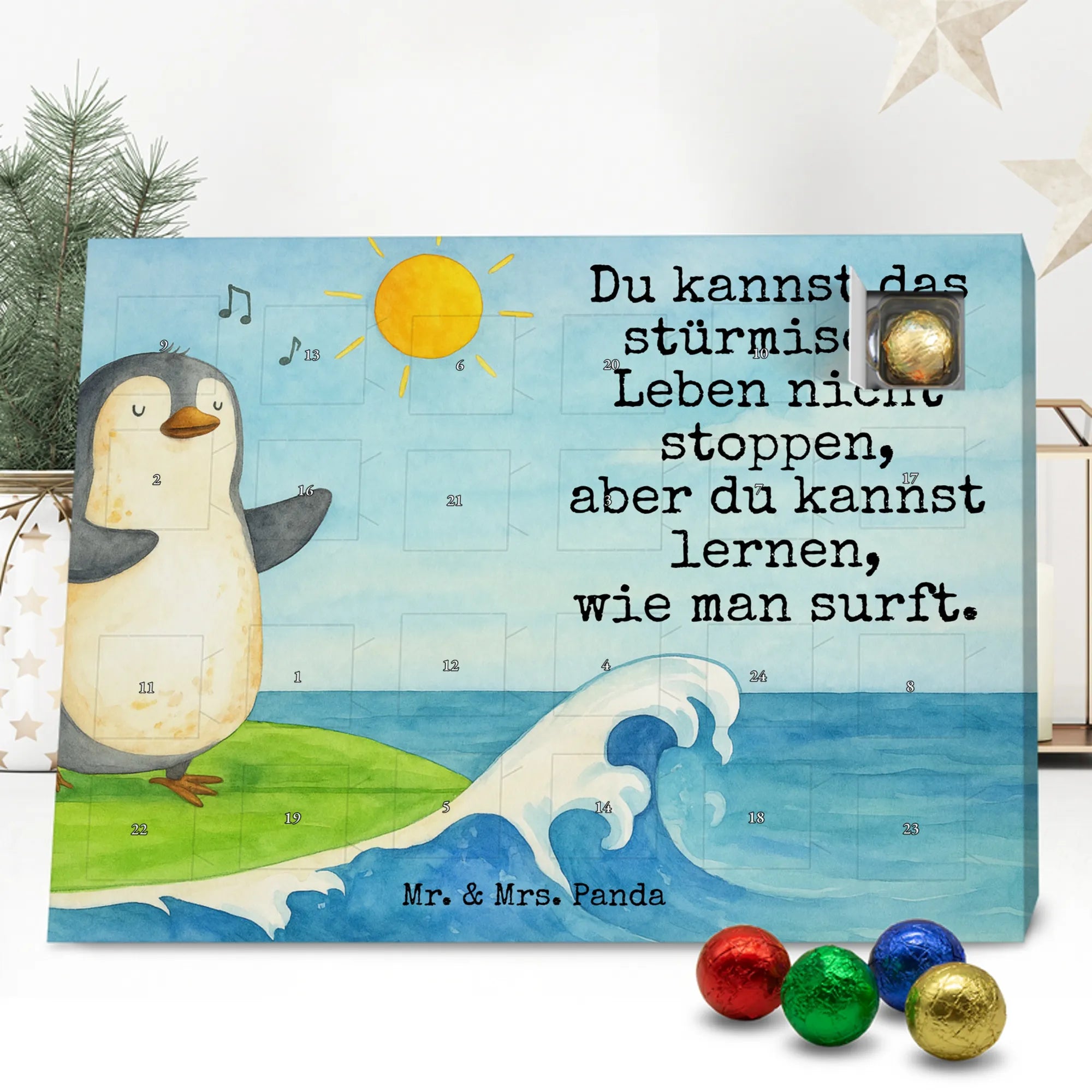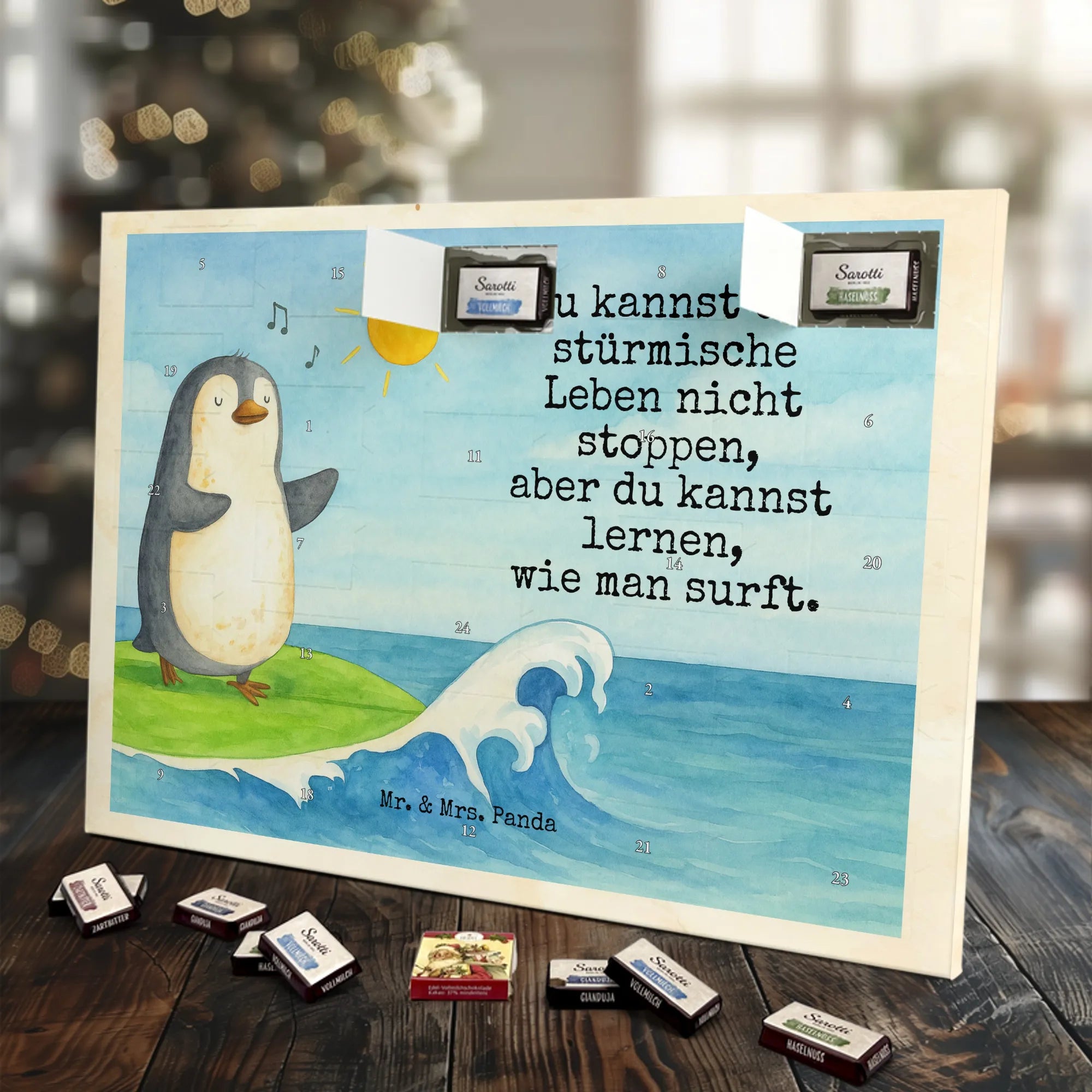 Wunderschöner Schokoladen Adventskalender von Mr. & Mrs. Panda: Pinguin Surfer
