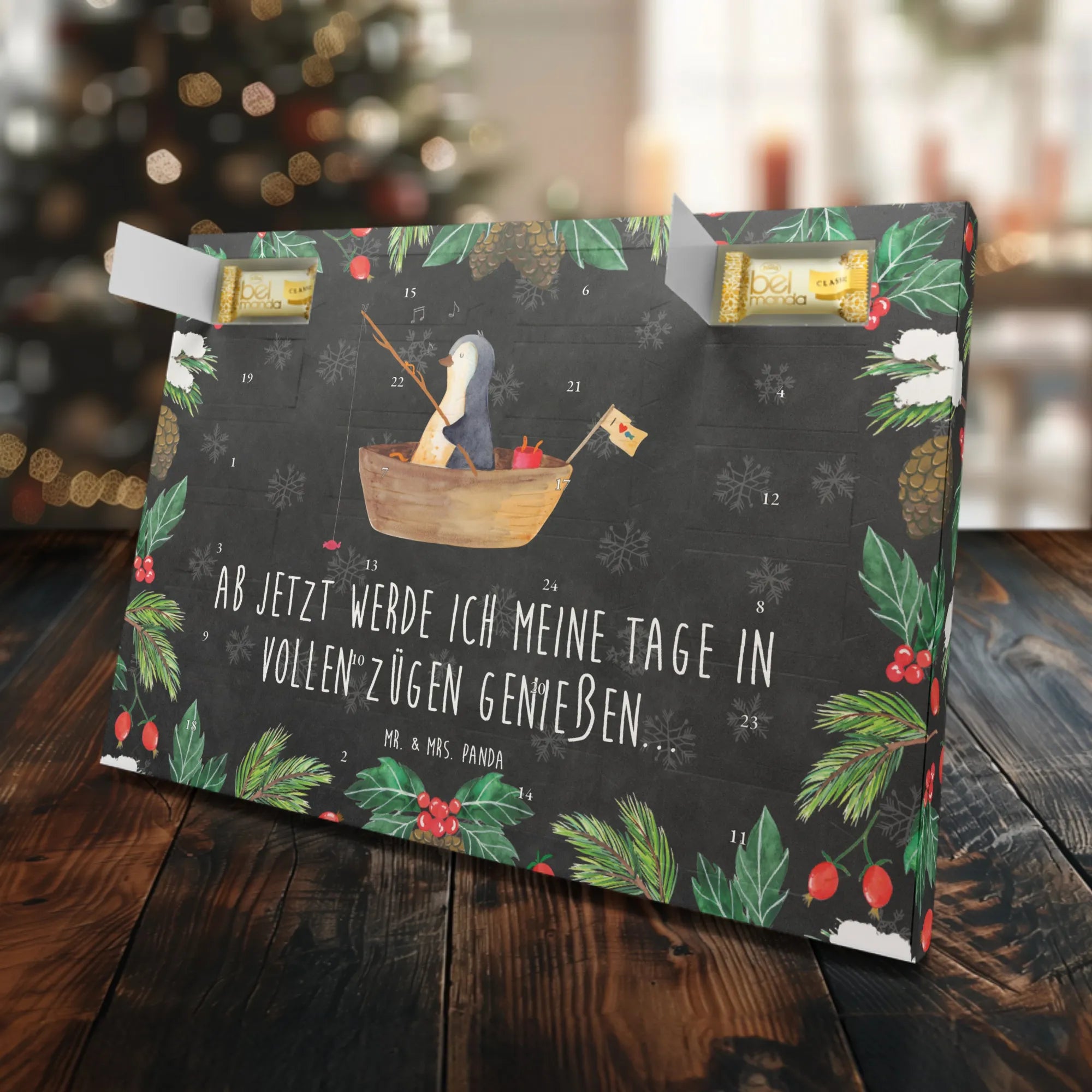 Marzipan Adventskalender Pinguin Angelboot - Schwarz