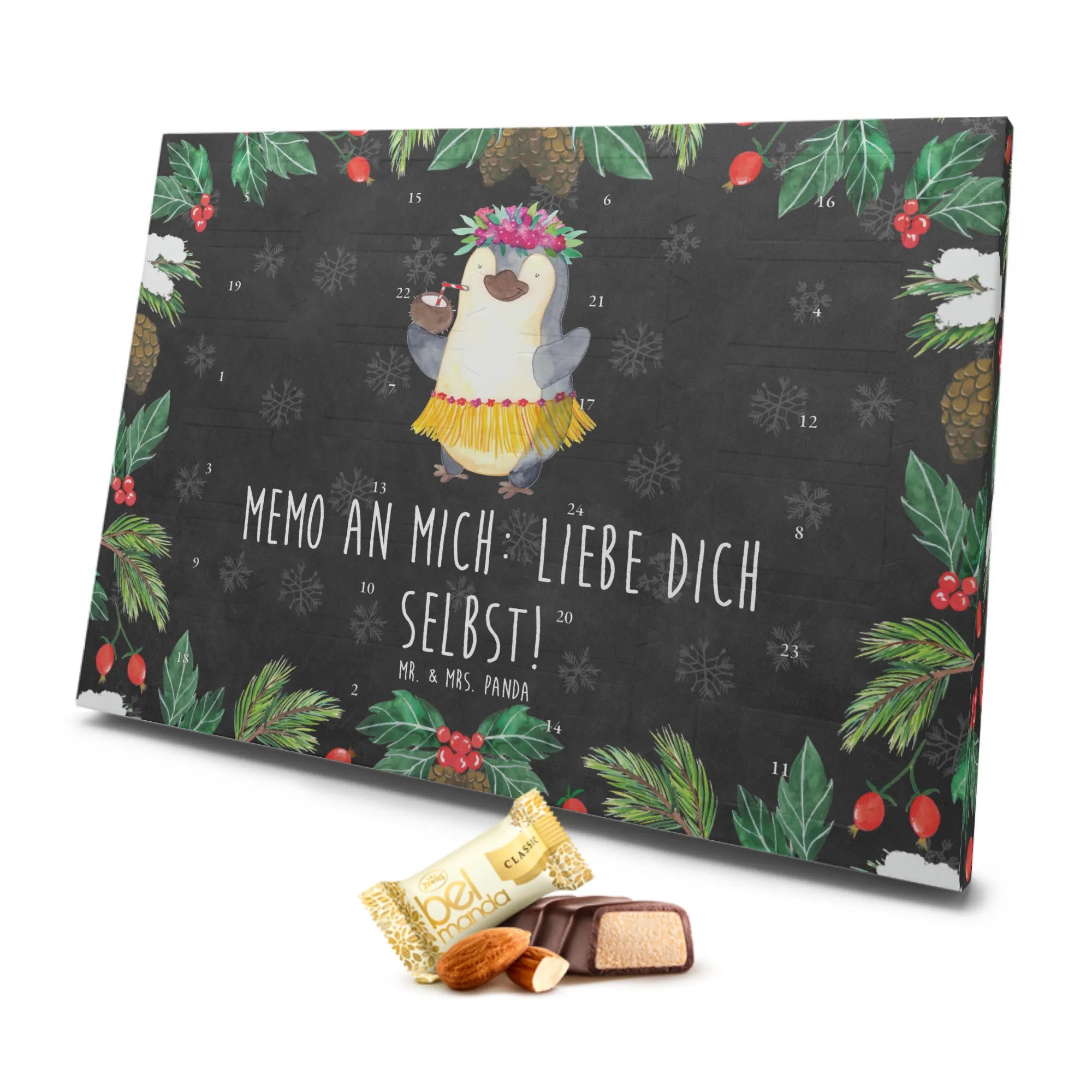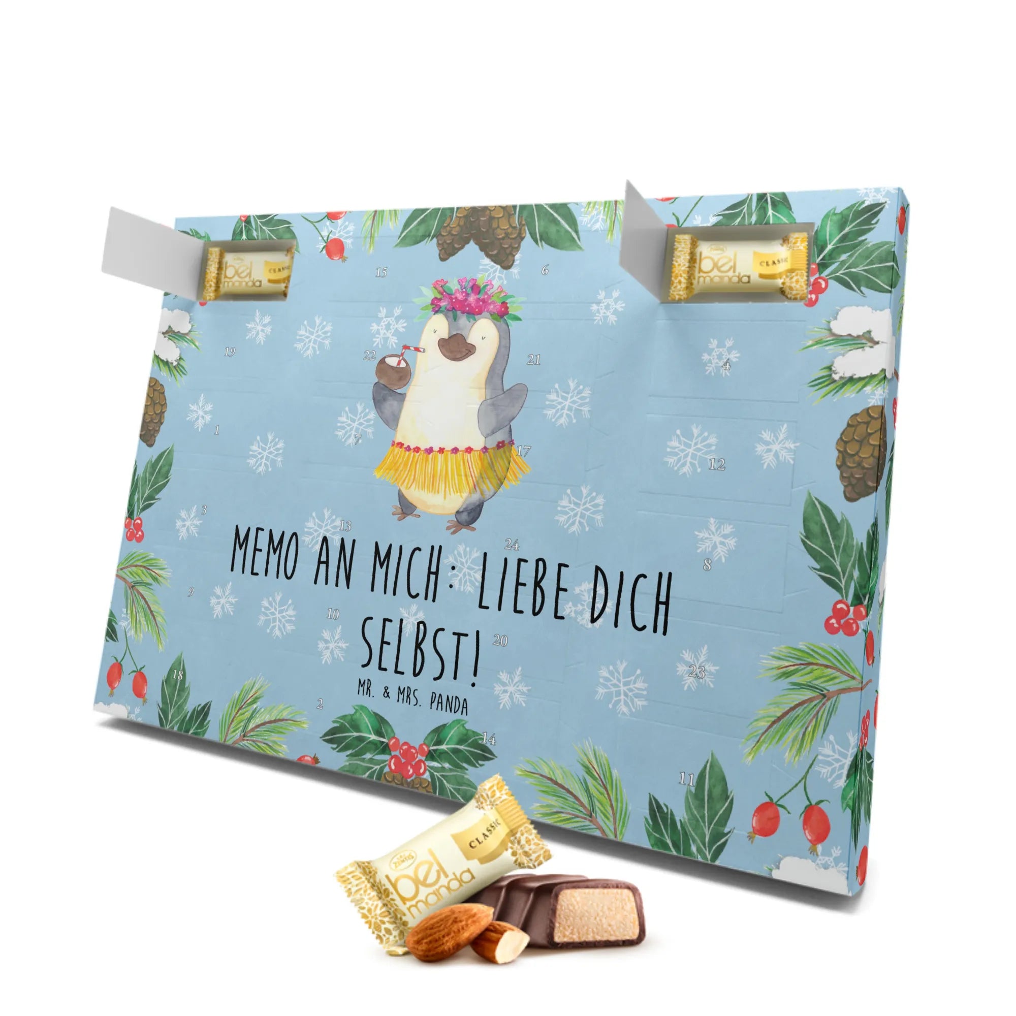 Die Pinguin Kollektion von Mr. & Mrs. Panda bietet dir wunderbare Geschenke mit einem freudigen Temperament, die Hand in Hand mit Liebe und Kreativität erstellt wurden. Lass den Pinguin Kokosnuss Adventskalender Teil Deines Weihnachtsfestes werden und erlebe, wie viel Freude ein kleines Stückchen Marzipan jeden Tag bringen kann!