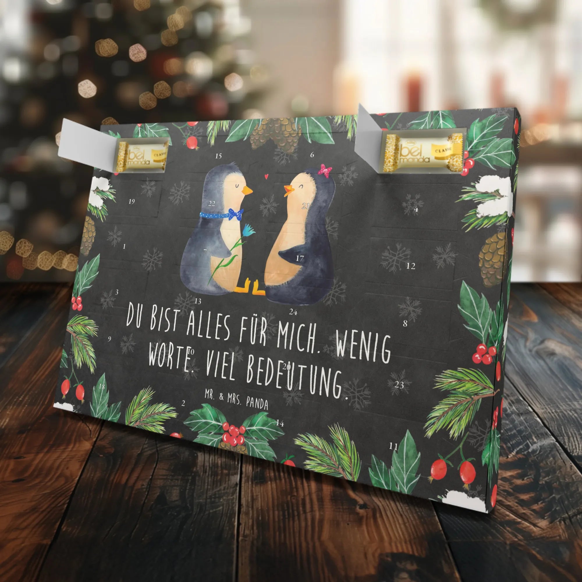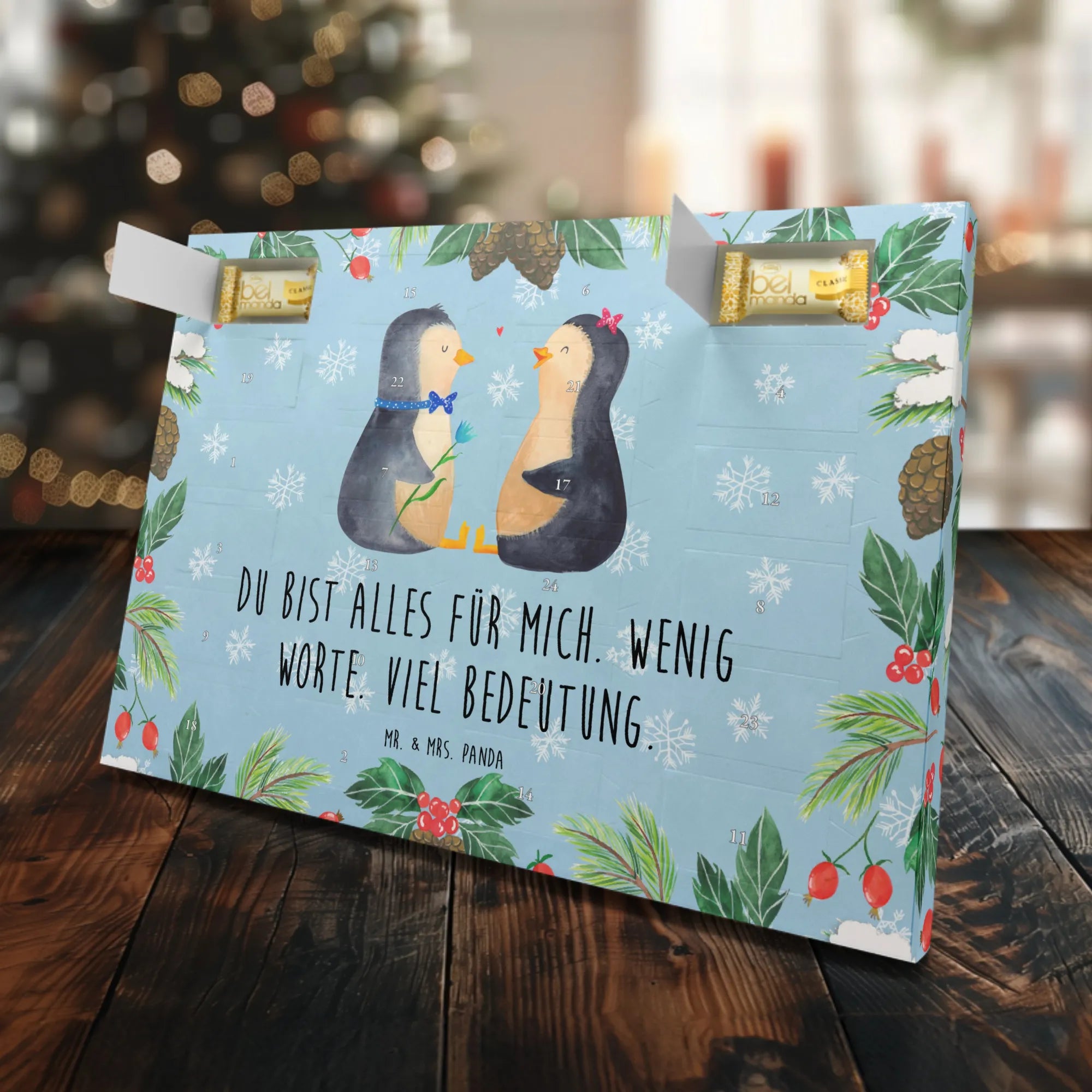 Der wunderschöne Marzipan Adventskalender von Mr. & Mrs. Panda ist das perfekte Geschenk für alle, die die große Liebe zelebrieren möchten! Dieses zauberhafte Stück Kunst mit dem niedlichen Motiv des Pinguin Pärchens bringt nicht nur Weihnachtsfreude, sondern auch Herzenswärme für Paare und Verliebte. Mit dem liebevollen Slogan "Du bist alles für mich. Wenig Worte. Viel Bedeutung." macht dieser Adventskalender jedem Liebespaar anschaulich, wie viel sie füreinander bedeuten.