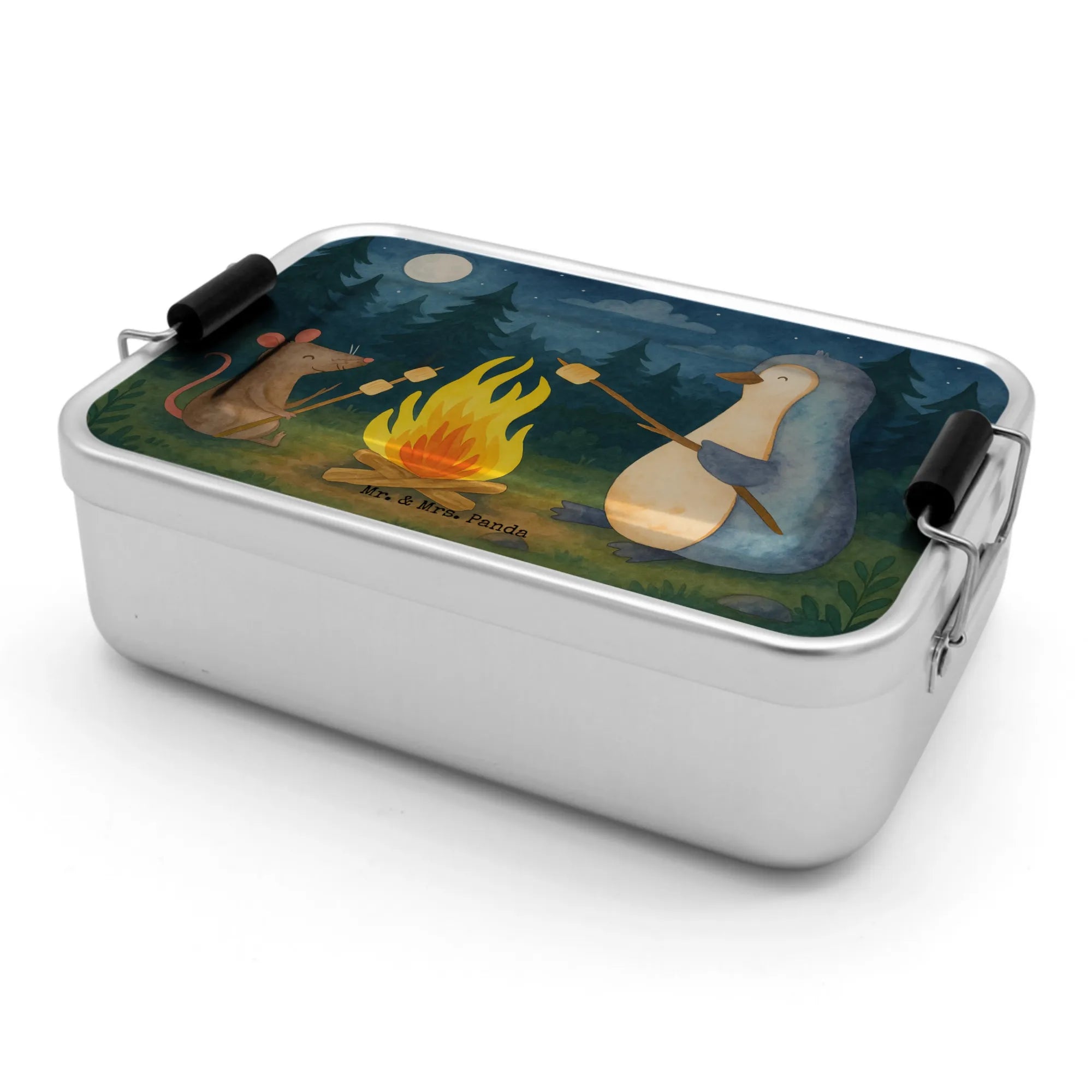 Metall Brotdose Pinguin Lagerfeuer Design