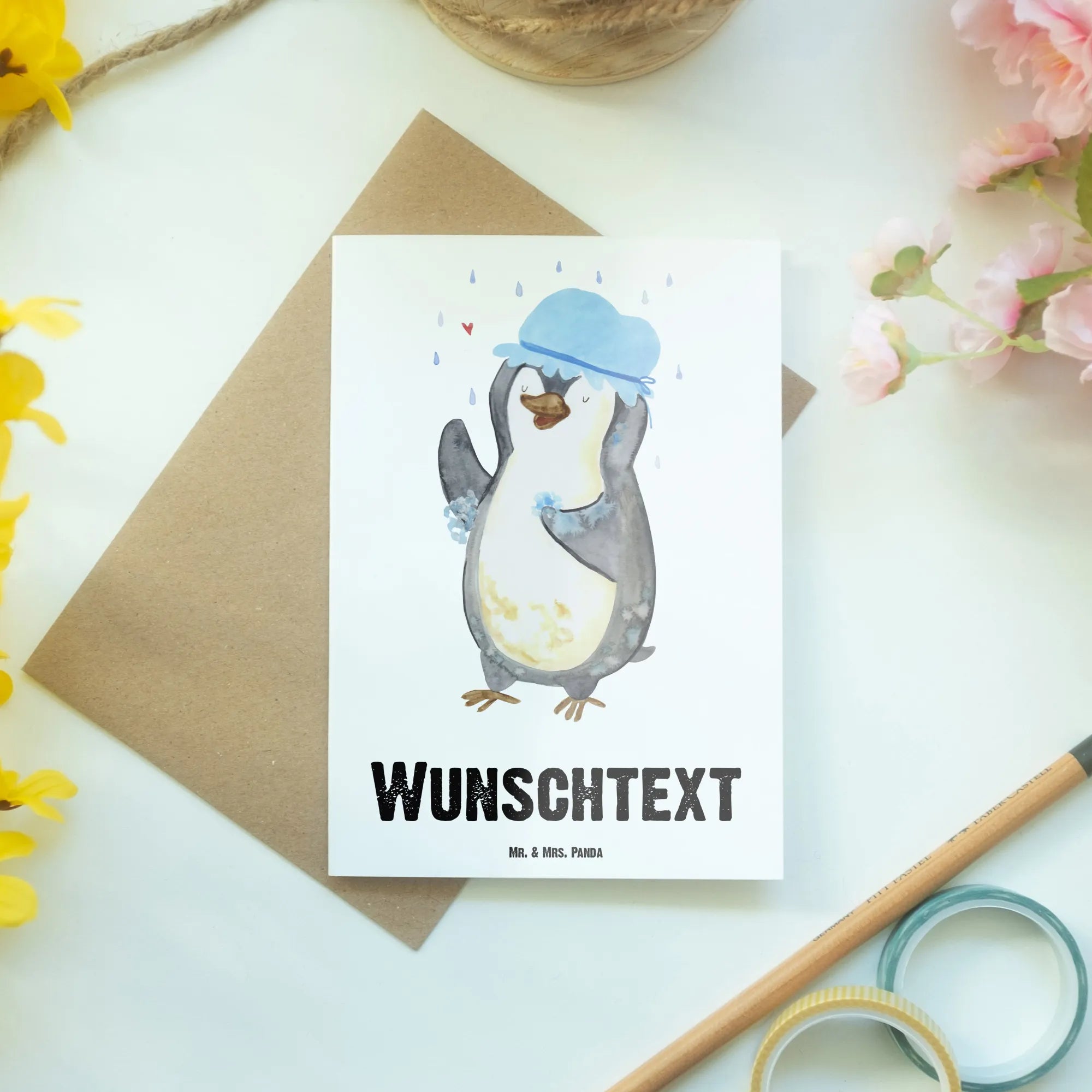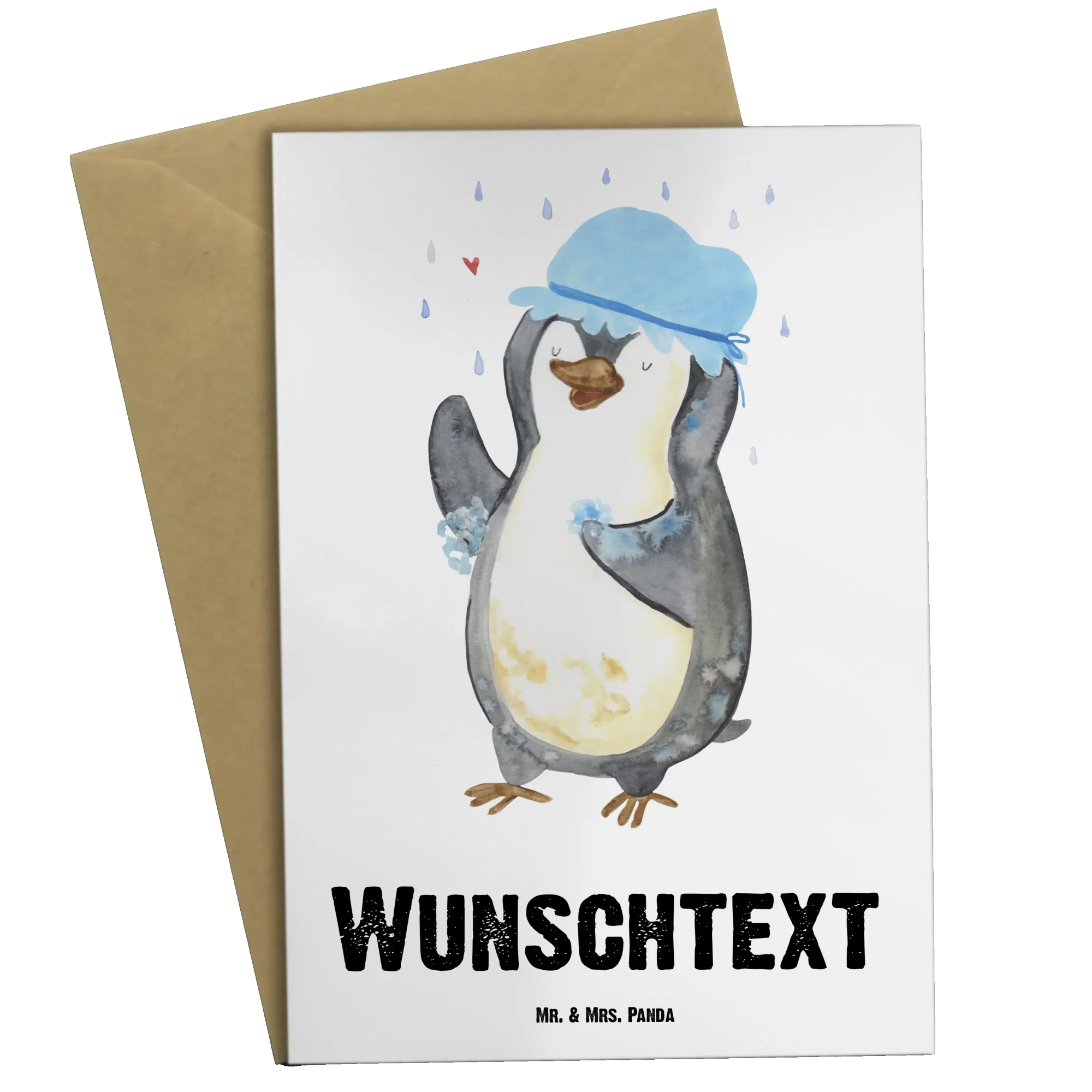 Personalised greetings card Penguin have a shower