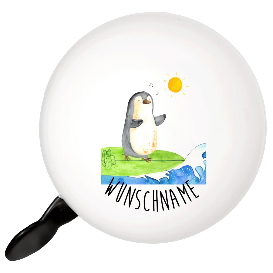 Mr. & Mrs. Panda presents: Die personalisierte Fahrradklingel „Pinguin Surfer“ aus der Pinguin - Kollektion – ein fröhlicher Begleiter für deinen Alltag! 🌊🐧