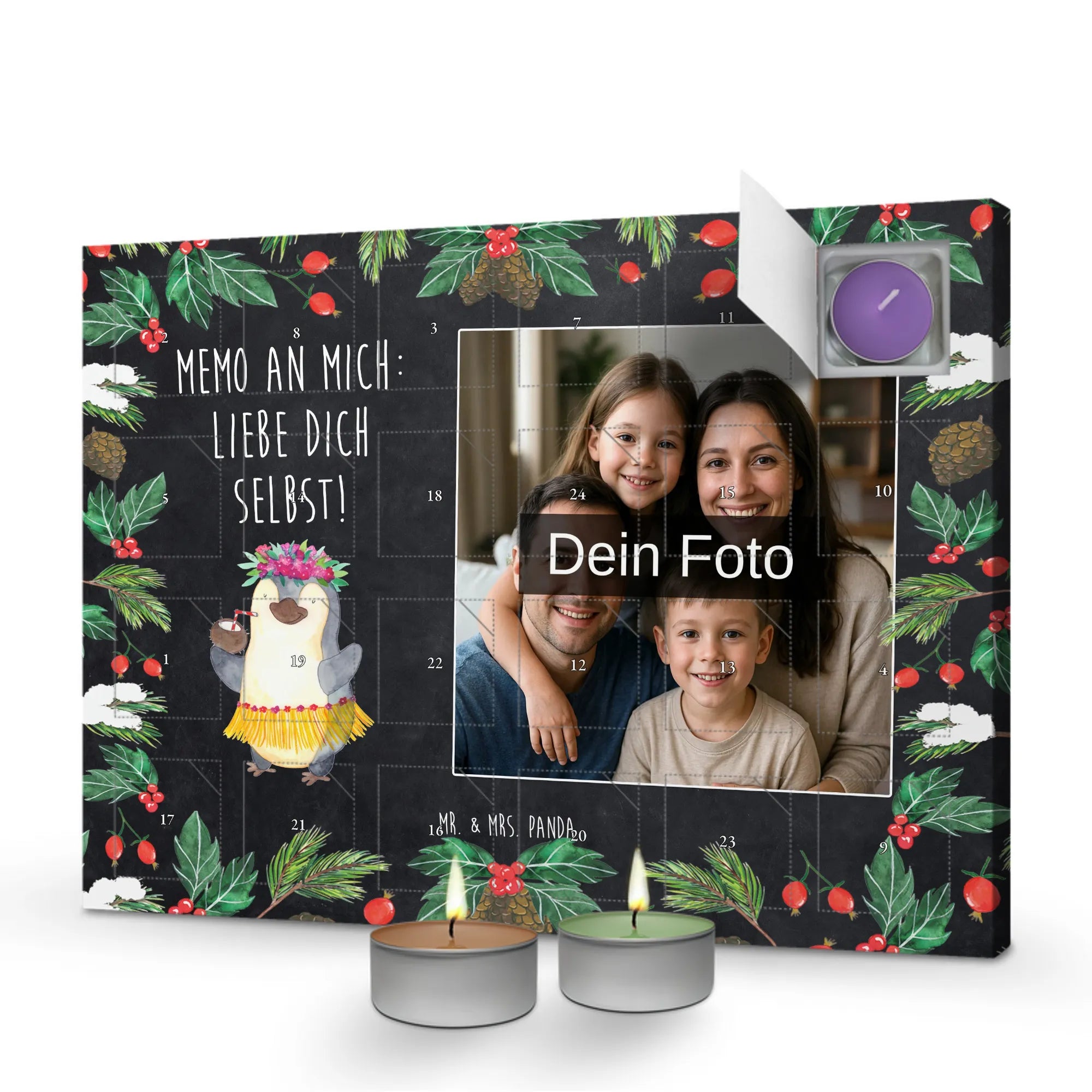 Personalisierter Duftkerzen Foto Adventskalender Pinguin Kokosnuss