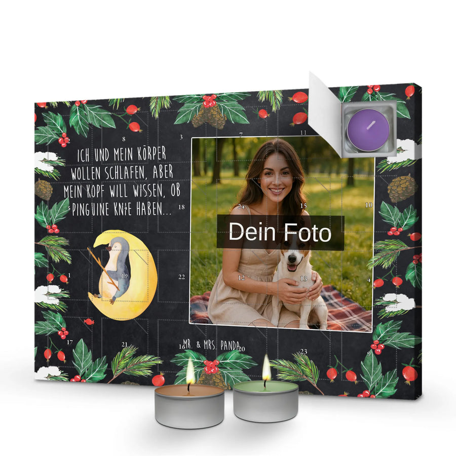 Personalisierter Duftkerzen Foto Adventskalender Pinguin Mond