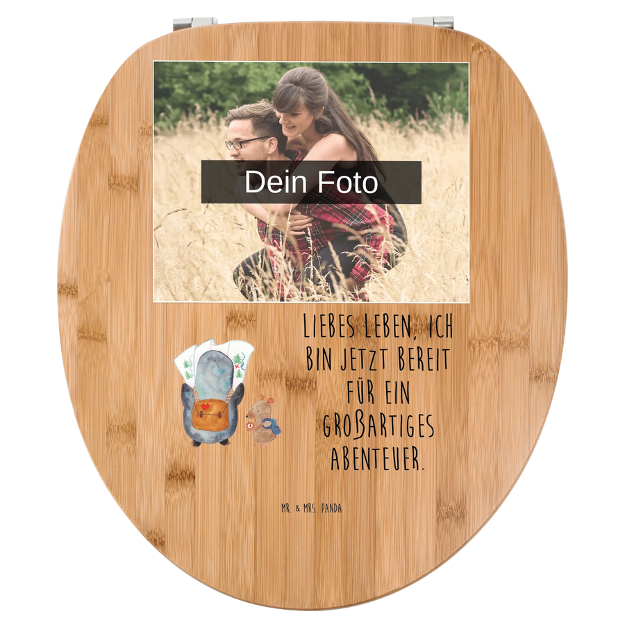 Personalisierter Foto WC Sitz Motiv Pinguin & Maus Wanderer - Bambus