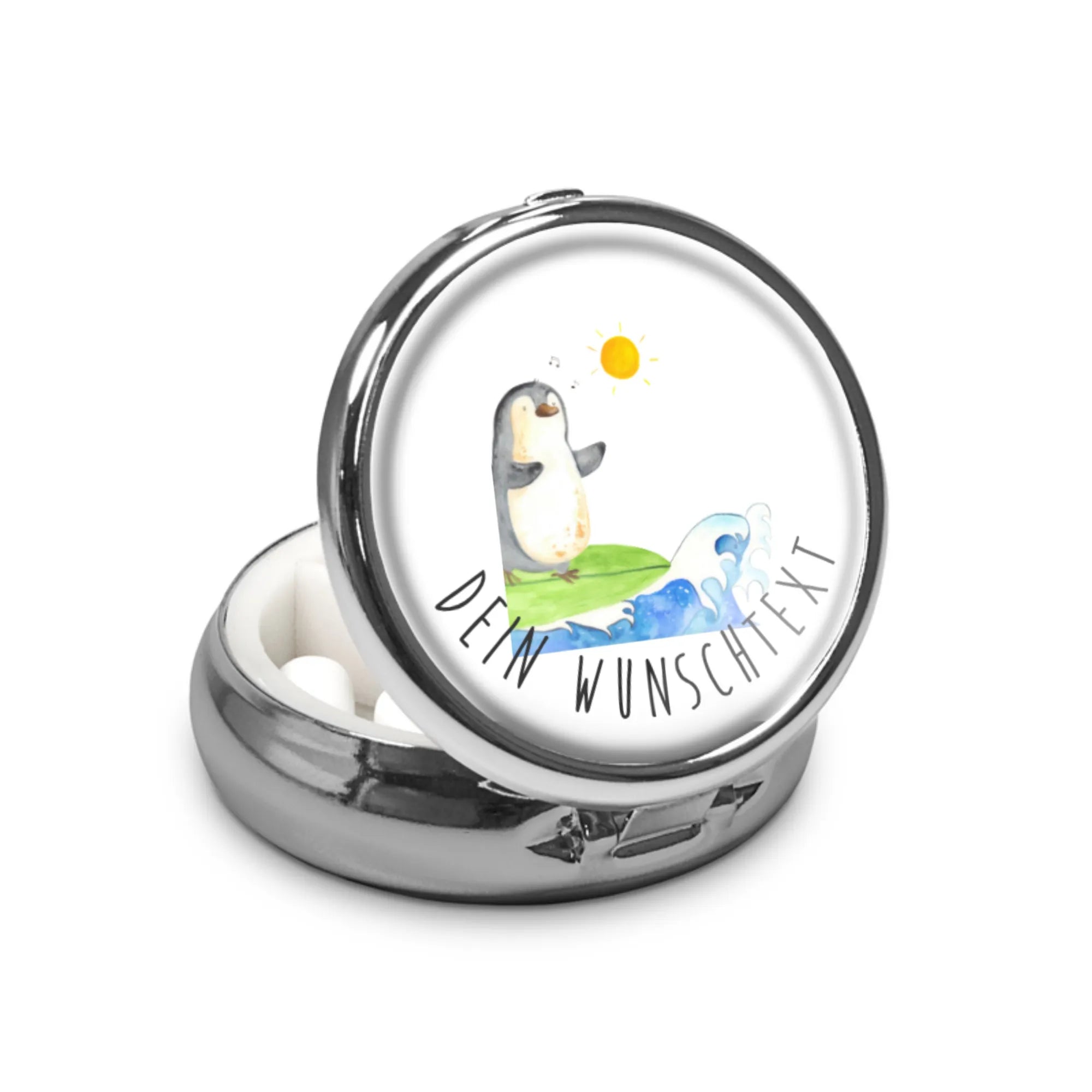 Personalized Pill Box Penguin surfer Personalisierte Pillendose, Pillen, Personalisierte Dose, Personalisierte Pillenorganizer, Personalisierte Tablettenbox, Tabletten, Personalisierter Tablettenorganizer, Personalisierte Pillendose klein, Pillendose mit Wunschnamen, Pinguin, surfen, Pinguine, Hawaii, Wellen, Urlaub, Wellen reiten, Surfer, Portugal
