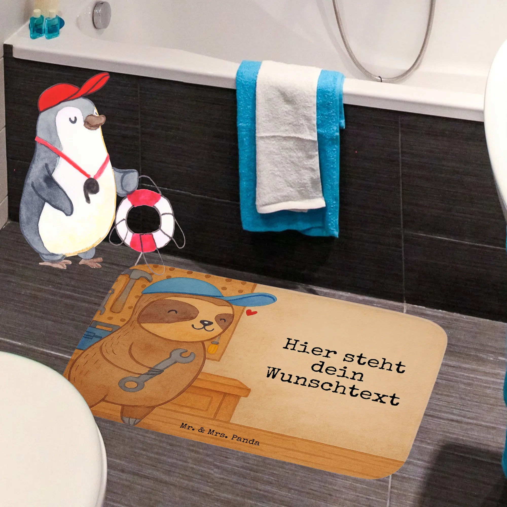 Personalisierte Badematte Faultier Vater Design – Mr. & Mrs. Panda