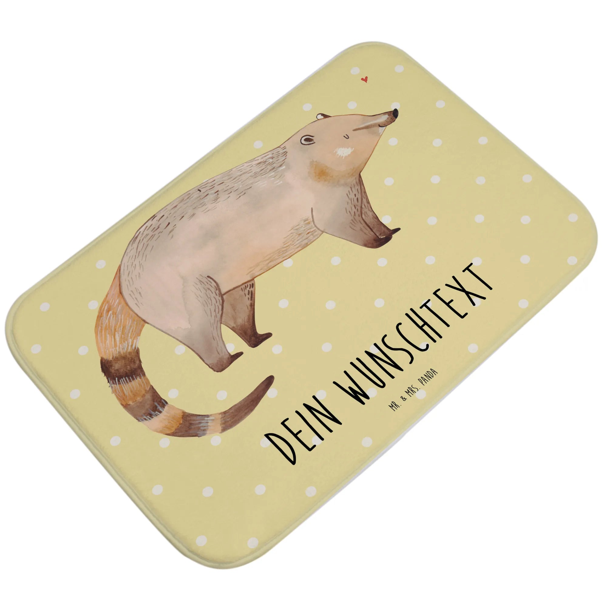 Durch die Kombination aus niedlichem Design, Funktionalität und der Möglichkeit zur Personalisierung verwandelt dieser Badvorleger dein Badezimmer in einen Ort der Entspannung und Freude! Lass dich von der Lust am Leben des kleinen Nasenbären anstecken und überzeuge dich selbst von der tollen Optik in deinem Badezimmer. Der personalisierte Badvorleger von Mr. & Mrs. Panda ist ein Muss für jeden Tierliebhaber und sorgt für ein einzigartiges Ambiente in deinem Raum.