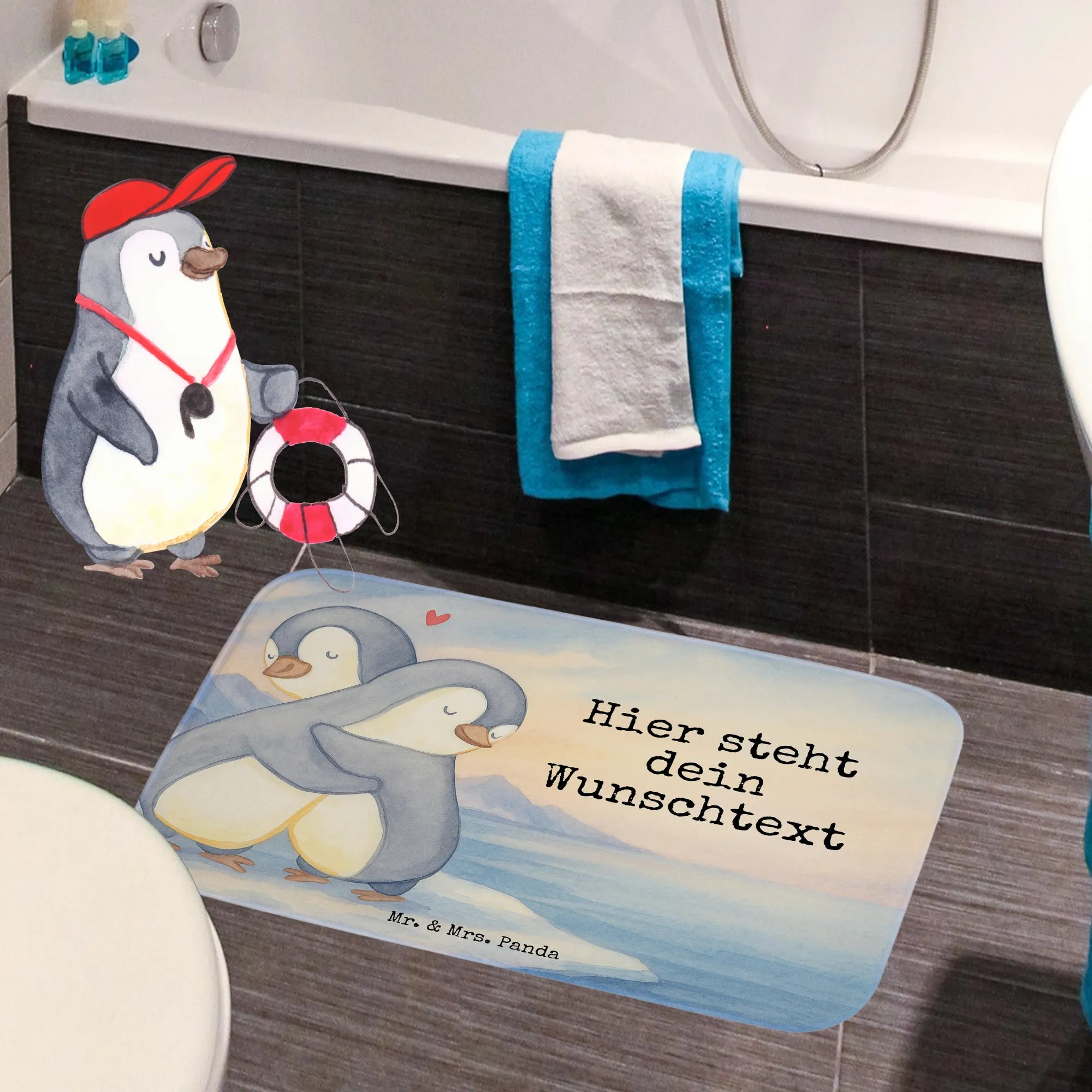 Der Mr. & Mrs. Panda personalisierte Badvorleger ist mehr als nur ein Badteppich! Mit einem Maß von 590 mm x 400 mm passt er perfekt in jedes Badezimmer. Er wird individuell mit deinem Wunschtext oder Namen bedruckt und zaubert schon beim ersten Schritt ein Lächeln auf dein Gesicht. Die kuschelige Oberfläche aus hochwertigen Kunstfasern und die rutschfeste Gummibeschichtung garantieren Sicherheit und Behaglichkeit. Dieser Badvorleger ist nicht nur optisch ansprechend, sondern auch funktional: besonders saugstark und leicht zu pflegen – einfach bei 30°C waschbar! Verleihe deinem Badezimmer eine ganz persönliche Note mit diesem einzigartigen Accessoire von Mr. & Mrs. Panda.