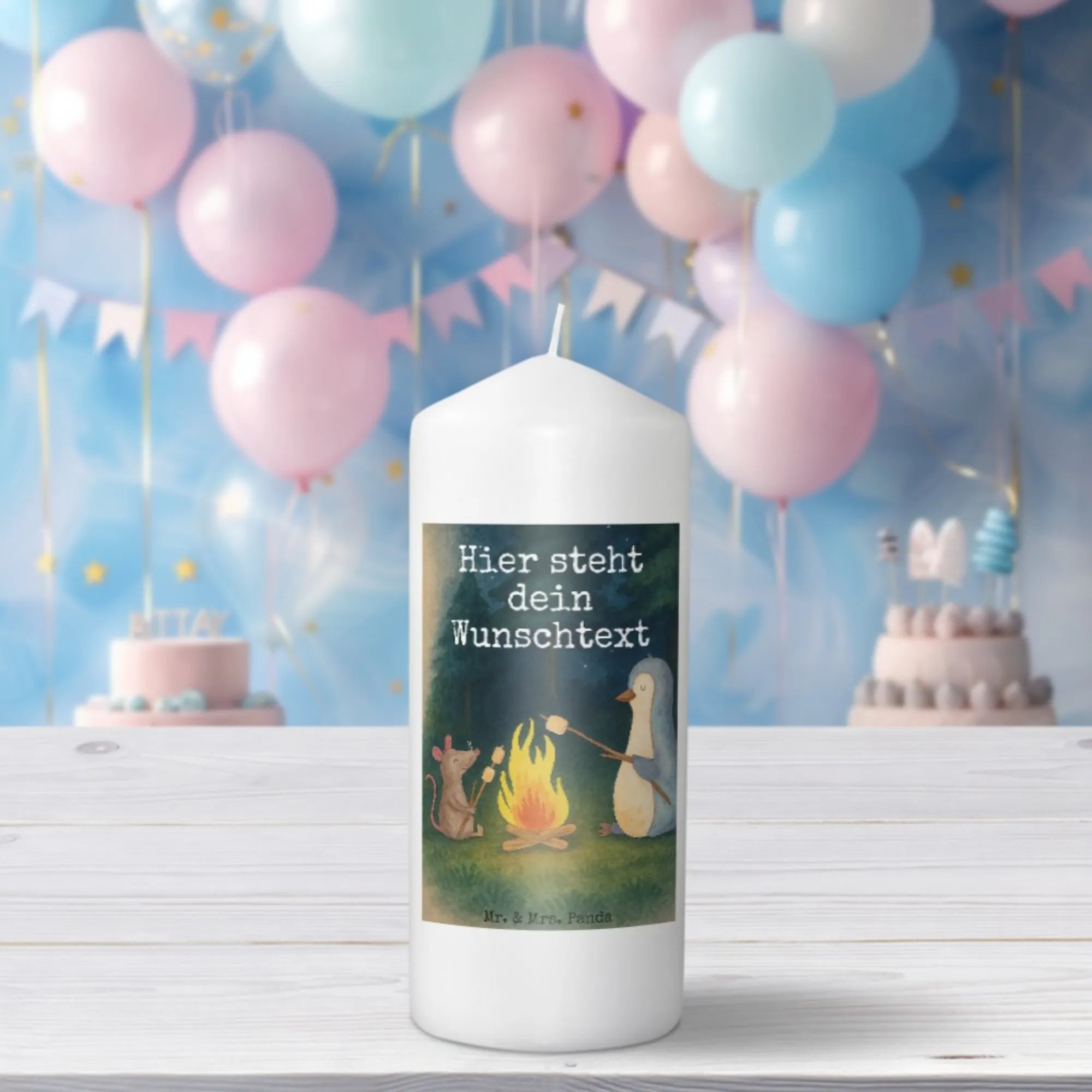 Personalised candle Penguin campfire Design - 29 x 8 cm XL