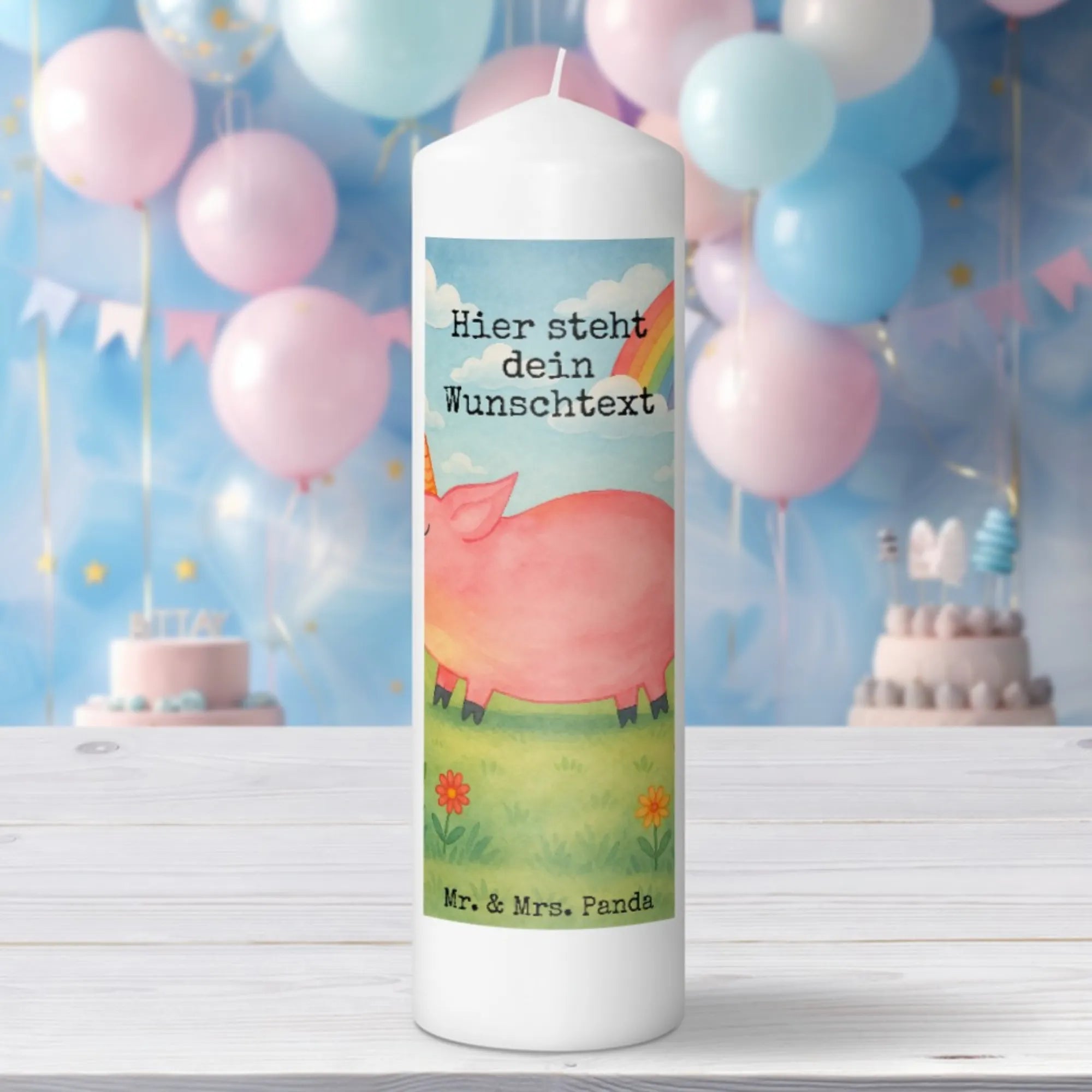 Personalisierte Kerze Einhorn Schwein Design - 19 x 8 cm
