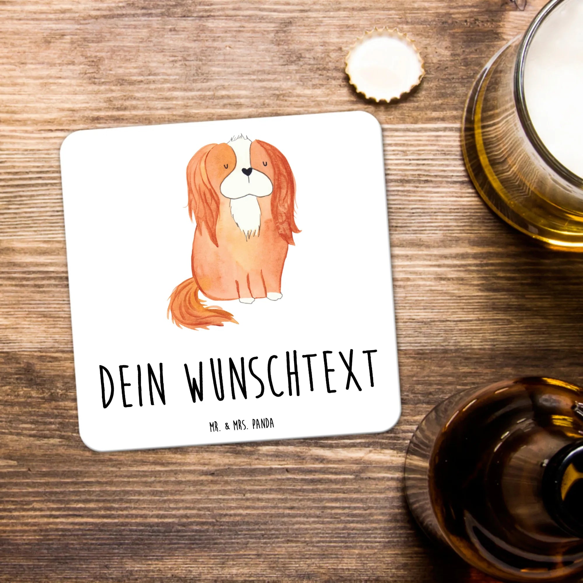 Suchst du ein Geschenk, das Herz und Alltag vereint? Unser personalisiertes Untersetzer Set mit dem liebevollen Cavalier King Charles Spaniel-Motiv aus der Hunde Kollektion von Mr. & Mrs. Panda verbindet praktische Funktion mit persönlicher Note. Das Motiv zeigt einen süßen Cavalier King Charles Spaniel – handgezeichnet von Mrs. Panda – und trägt den herzlichen Spruch „Es gibt so viele Hunde auf dieser Welt, und ausgerechnet ich habe den Schönsten."