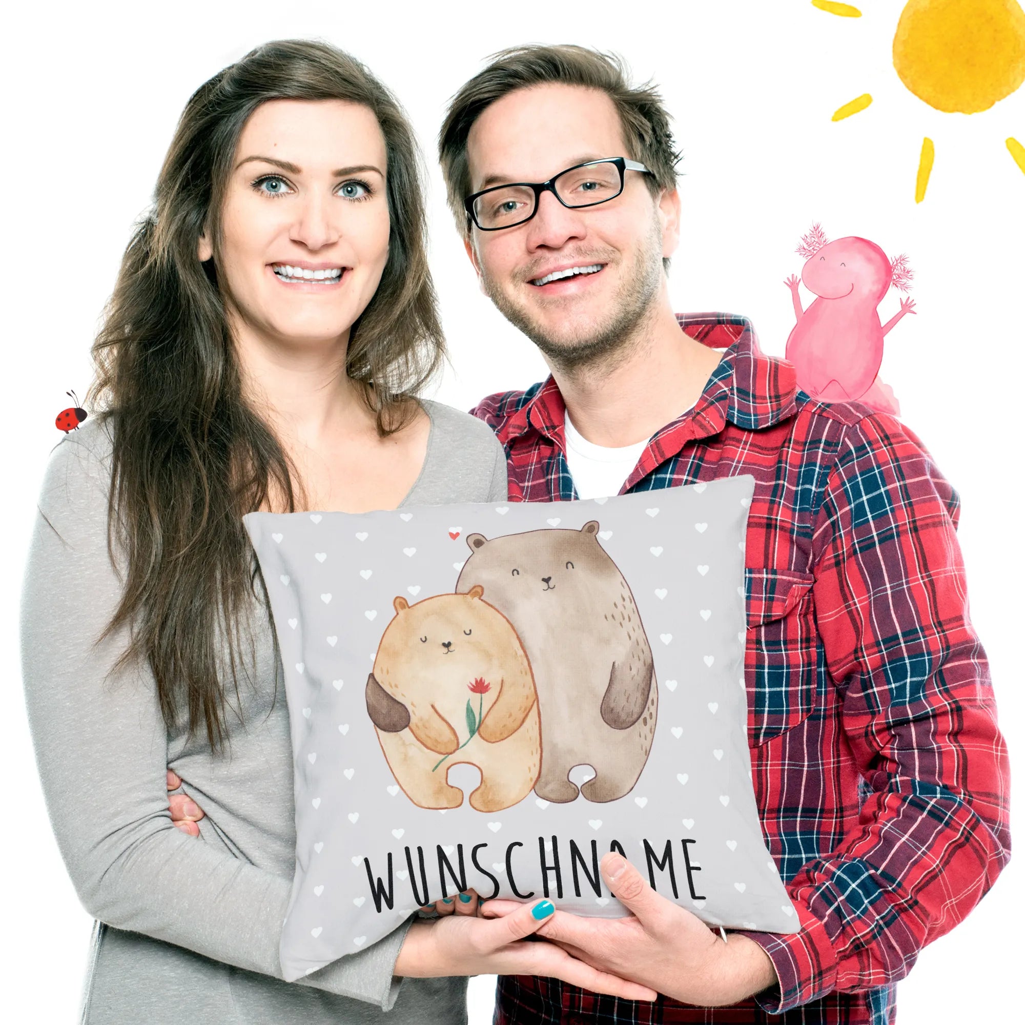 Snuggle up with our Personalised Cushion from Mr. & Mrs. Panda! Made from super fluffy microfiber, this beautiful cushion is not only delightful to touch but also an adorable addition to any space. Measuring a cozy 400 mm x 400 mm (16 inch x 16 inch), it features stunning prints and heartfelt quotes that will warm your heart. You can easily personalise it with your name or a special text of your choosing, making it an extra special gift for yourself or your loved ones. With a handy zipper for removing the filling, caring for your cushion is a breeze. Just wash it at 30° C to ensure your colors remain vibrant and fresh! Whether as a sofa cushion or decorative piece, this pillow is perfect for adding that extra touch of love to your home. Celebrate the moments that matter with this wonderful cushion!