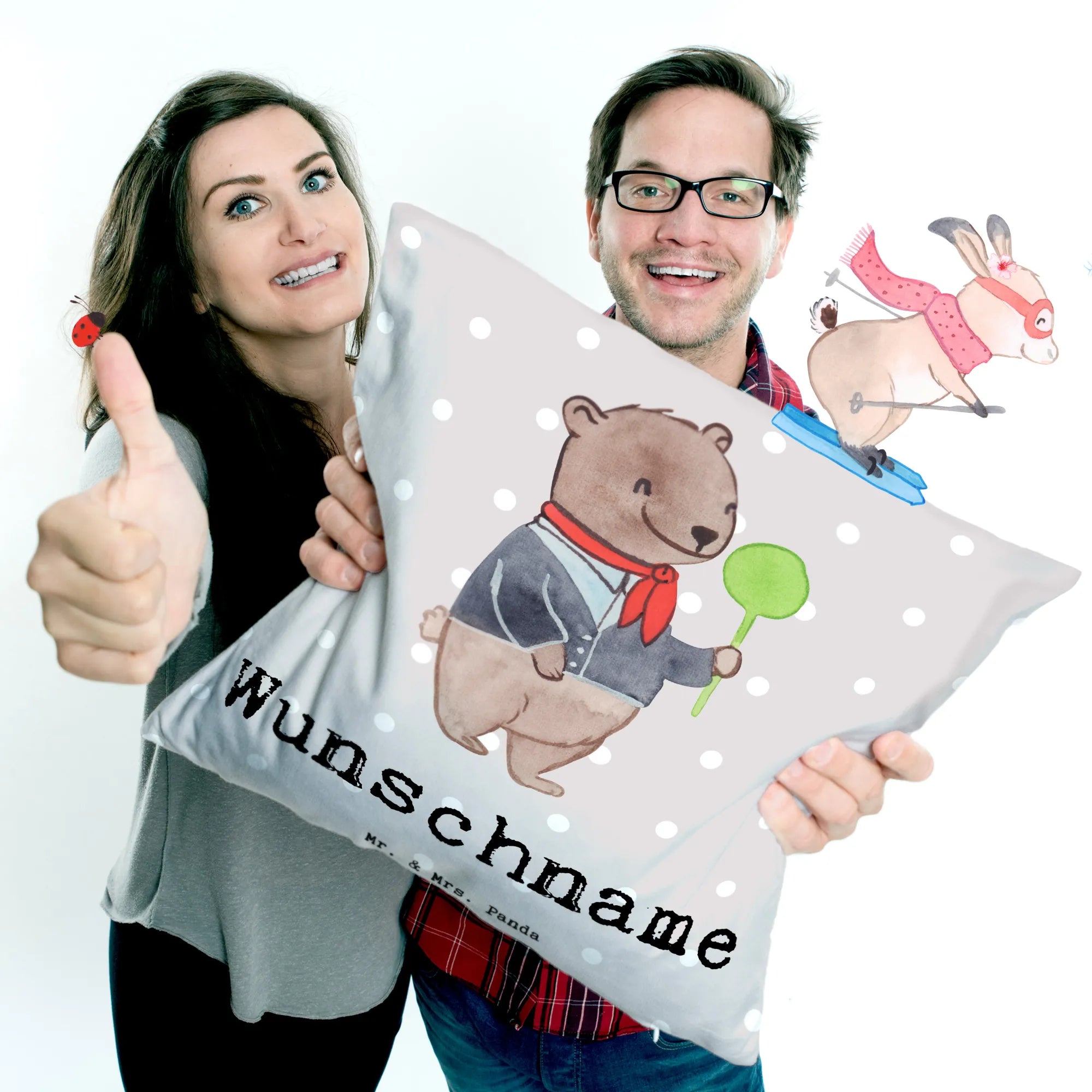 Make your space personal and cozy! Customize your Mr. & Mrs. Panda cushion now!