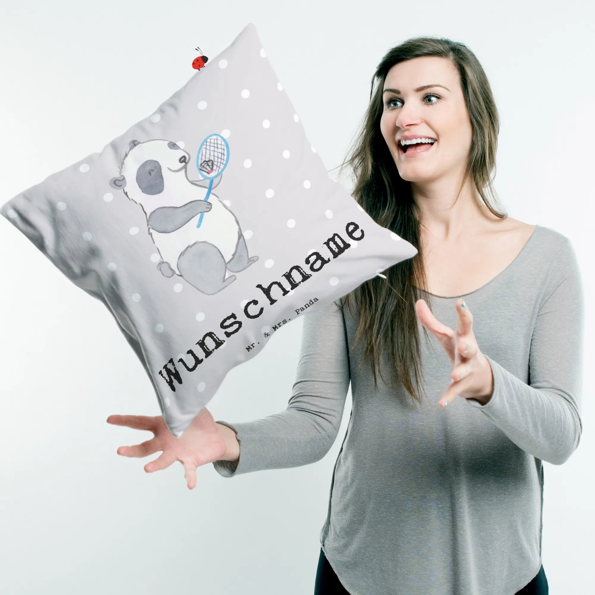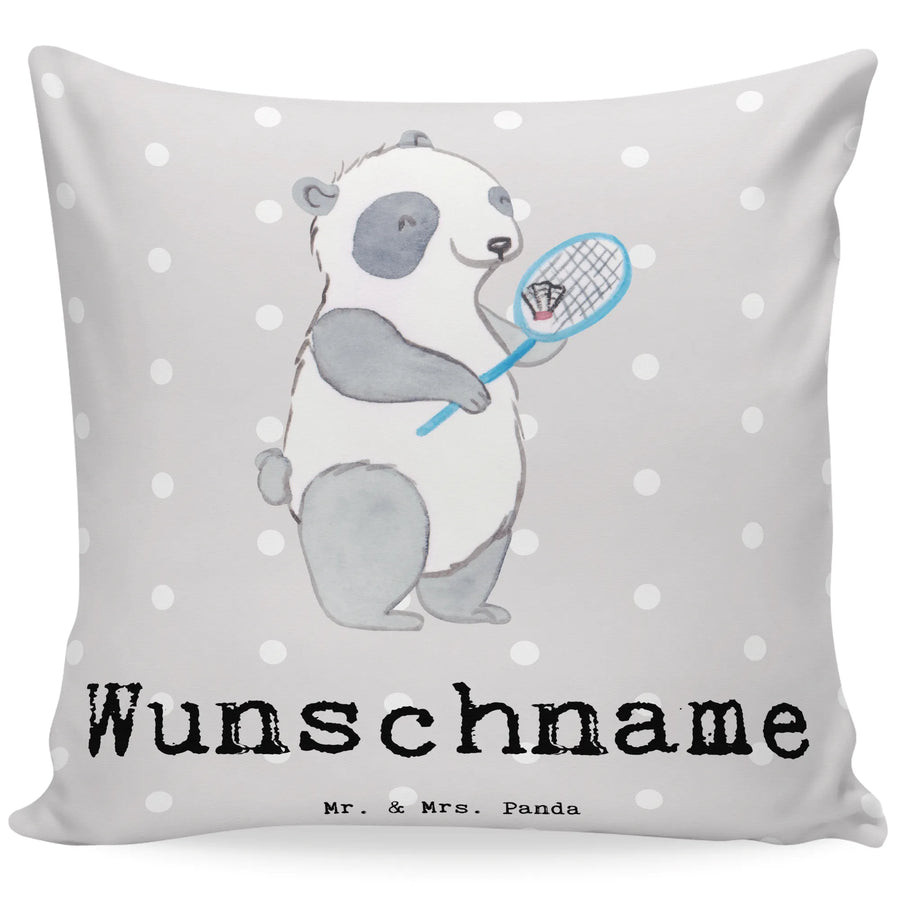 Personalised cushion panda badminton Gift, sport, hobby, giving, thank you, award, profit, athlete, Badminton, play badminton
