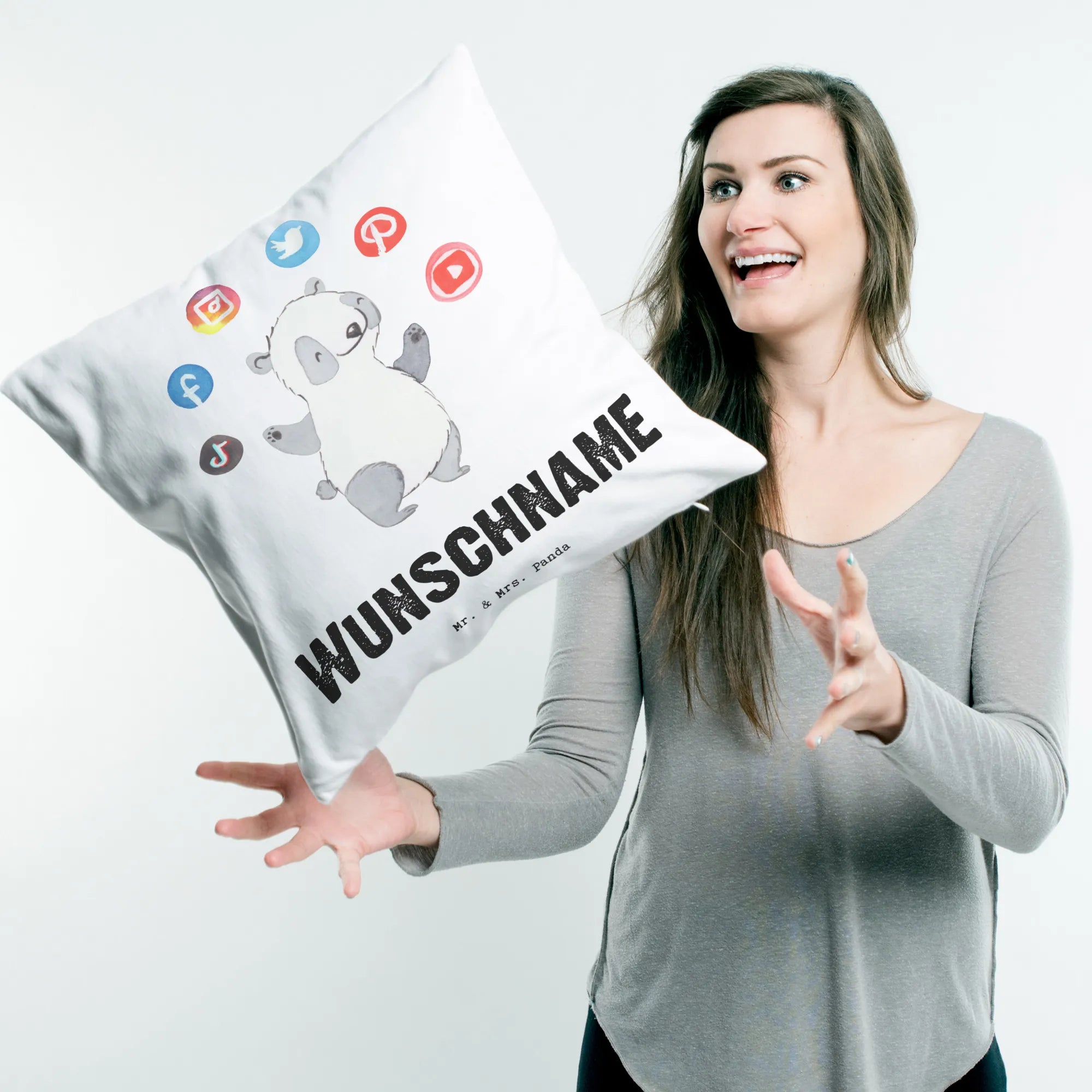 Stell dir vor, du kommst nach einem langen Tag voller Pressemitteilungen, Social-Media-Kampagnen und Networking-Events nach Hause. Was gibt es Schöneres, als sich in ein weiches Kissen zu sinken, das nicht nur unglaublich bequem ist, sondern auch noch deinen Namen trägt? Dieses Namenskissen ist ein echtes Unikat. Das Motiv zeigt einen niedlichen Panda, der mit verschiedenen Social-Media-Icons jongliert – ein perfektes Abbild des turbulenten, aber herzlichen Alltags eines PR-Profis. 🐼
