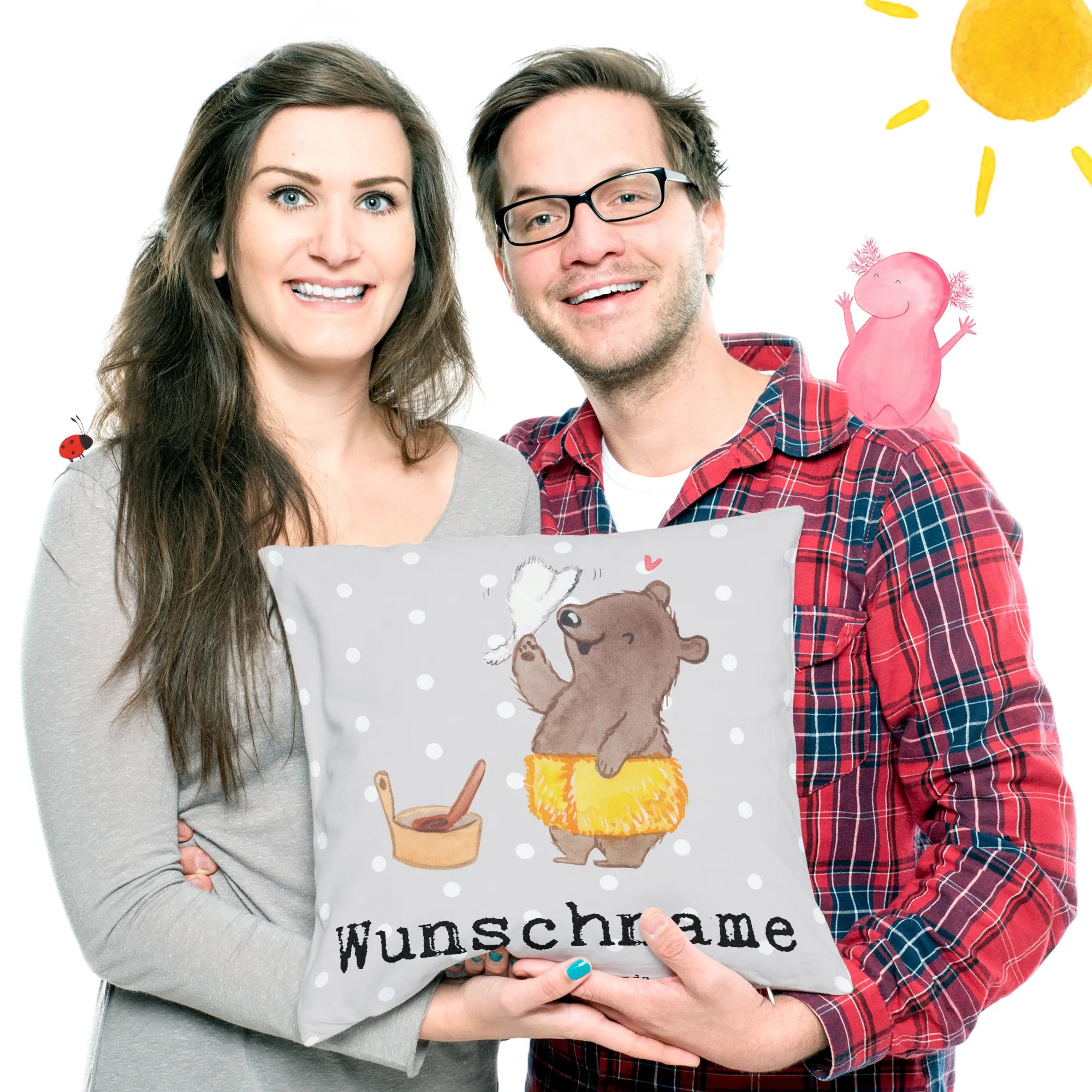 Transform your living space into a cozy haven with our Personalised Cushion from Mr. & Mrs. Panda! This soft and fluffy pillow, measuring 400 mm x 400 mm (16 inch x 16 inch), is stitched from premium microfiber material, ensuring that it’s as comfortable as it is stylish. With adorable illustrations and quotes, you can personalise it with any name or phrase you desire, making it a wonderful keepsake or gift. The meticulous design includes a convenient zipper for easy filling removal, so it can be washed effortlessly at 30° C to keep it looking fresh. This cushion is perfect not only for the sofa but also to add a touch of love to your bedroom décor. Celebrate your cherished memories with this charming cushion!