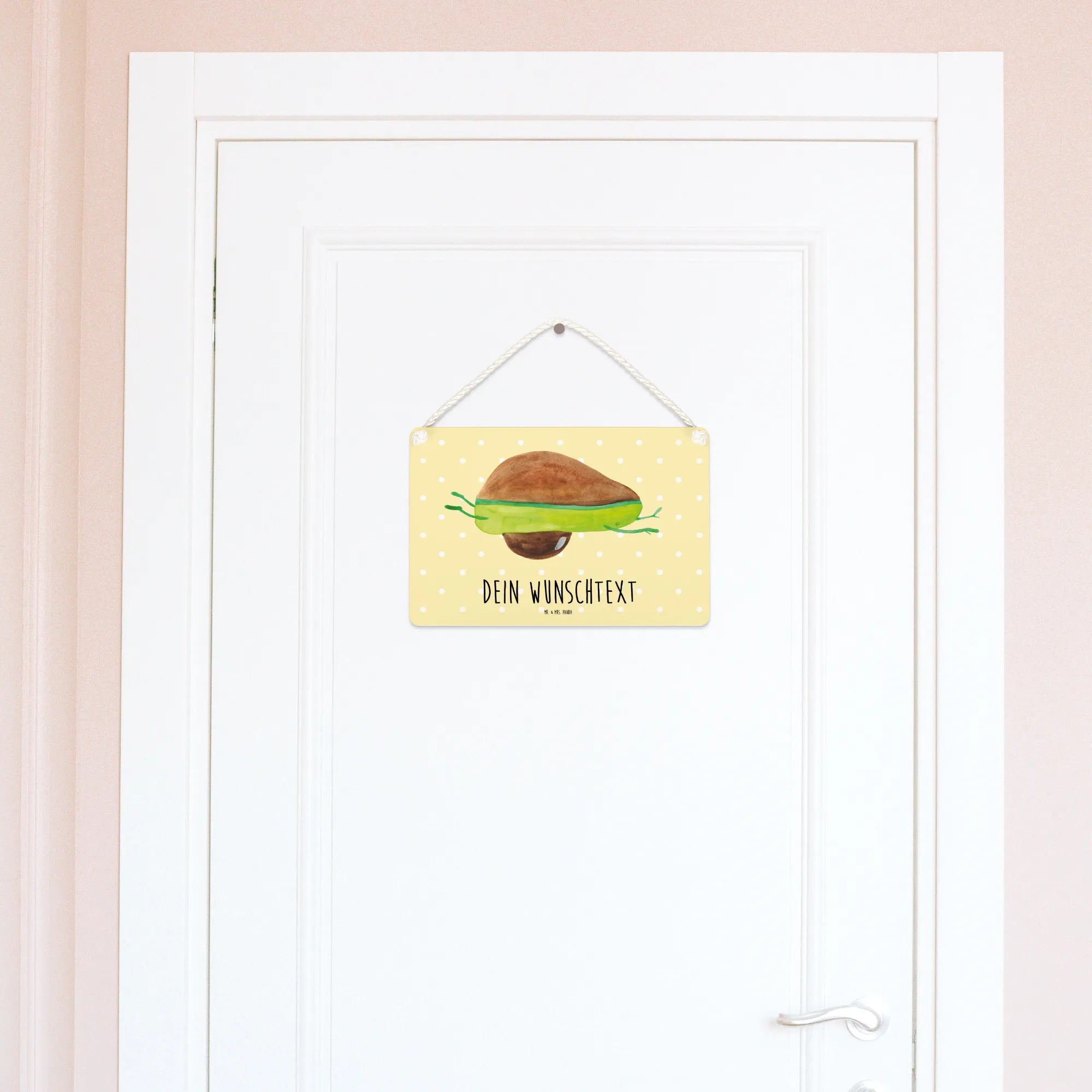 Personalised decorative sign avocado yoga - DIN A6 - Yellow Pastel