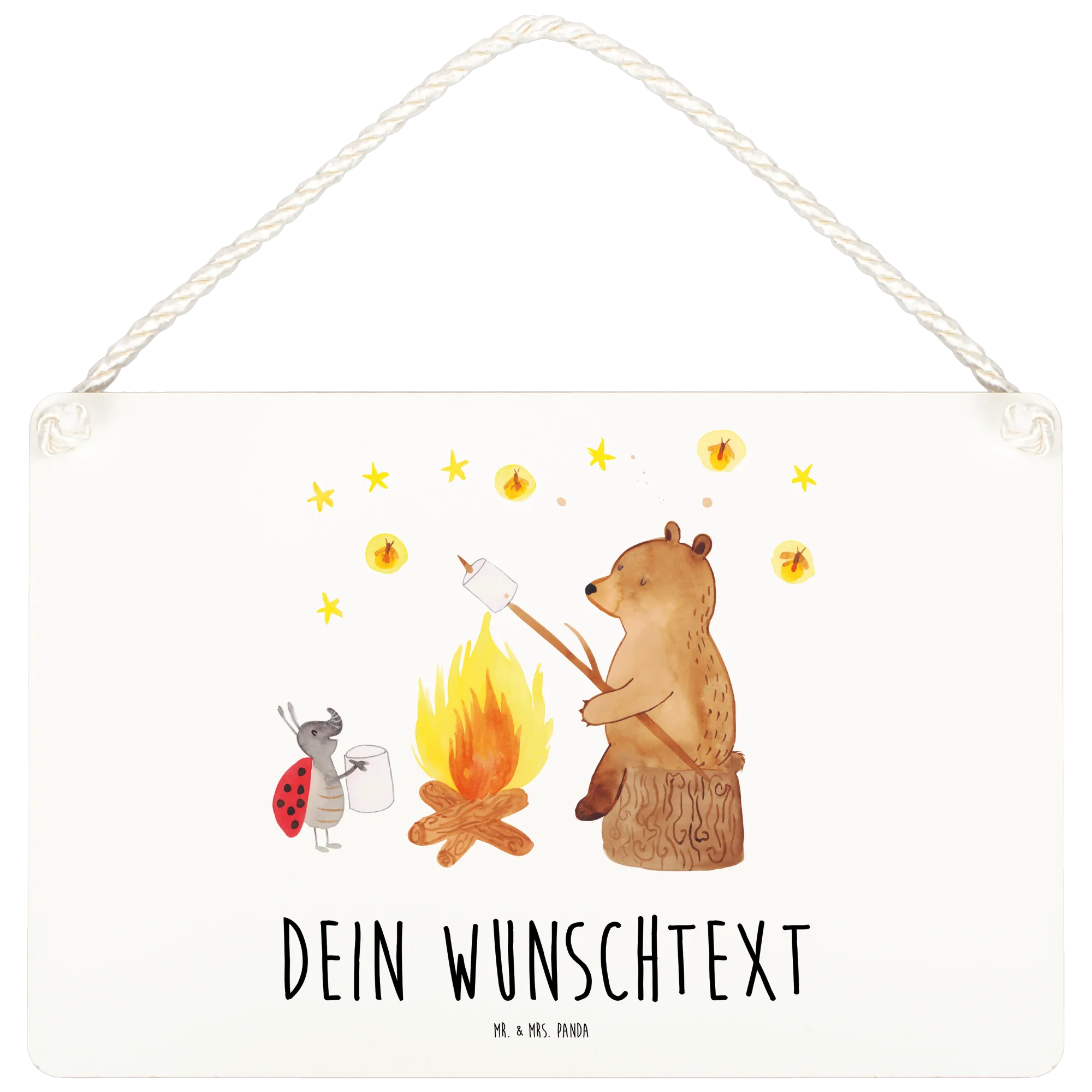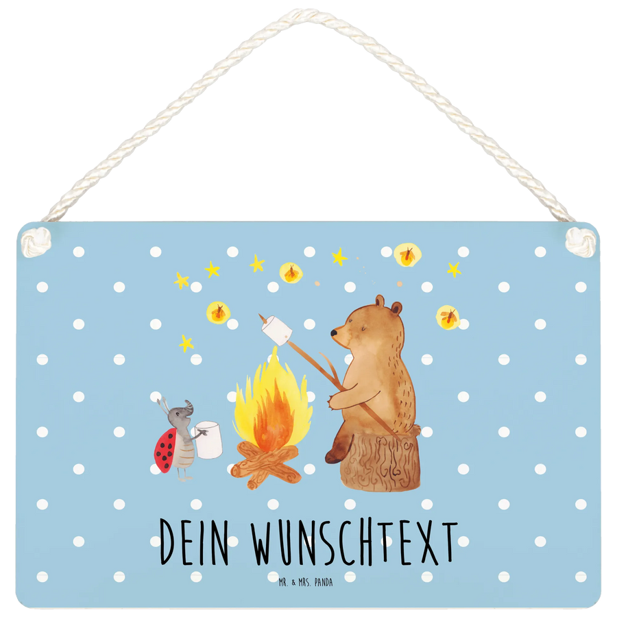 Personalised decorative sign Bear & Ladybird campfire - DIN A6 - Blue Pastel