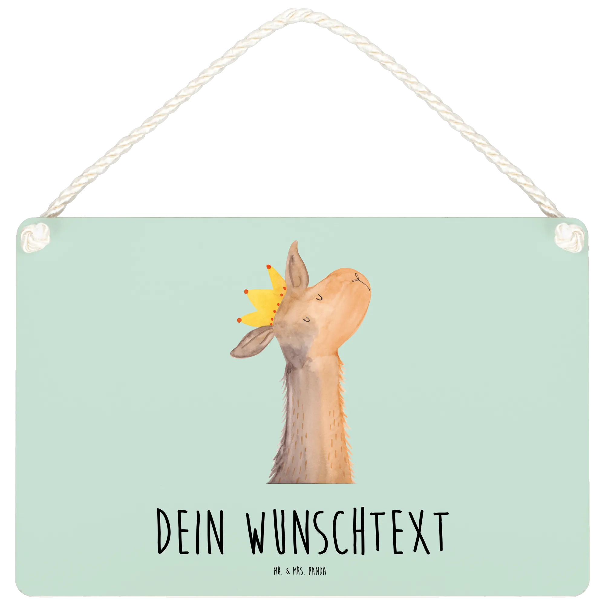 Personalised decorative sign llama head king - DIN A6 - Aztec blue