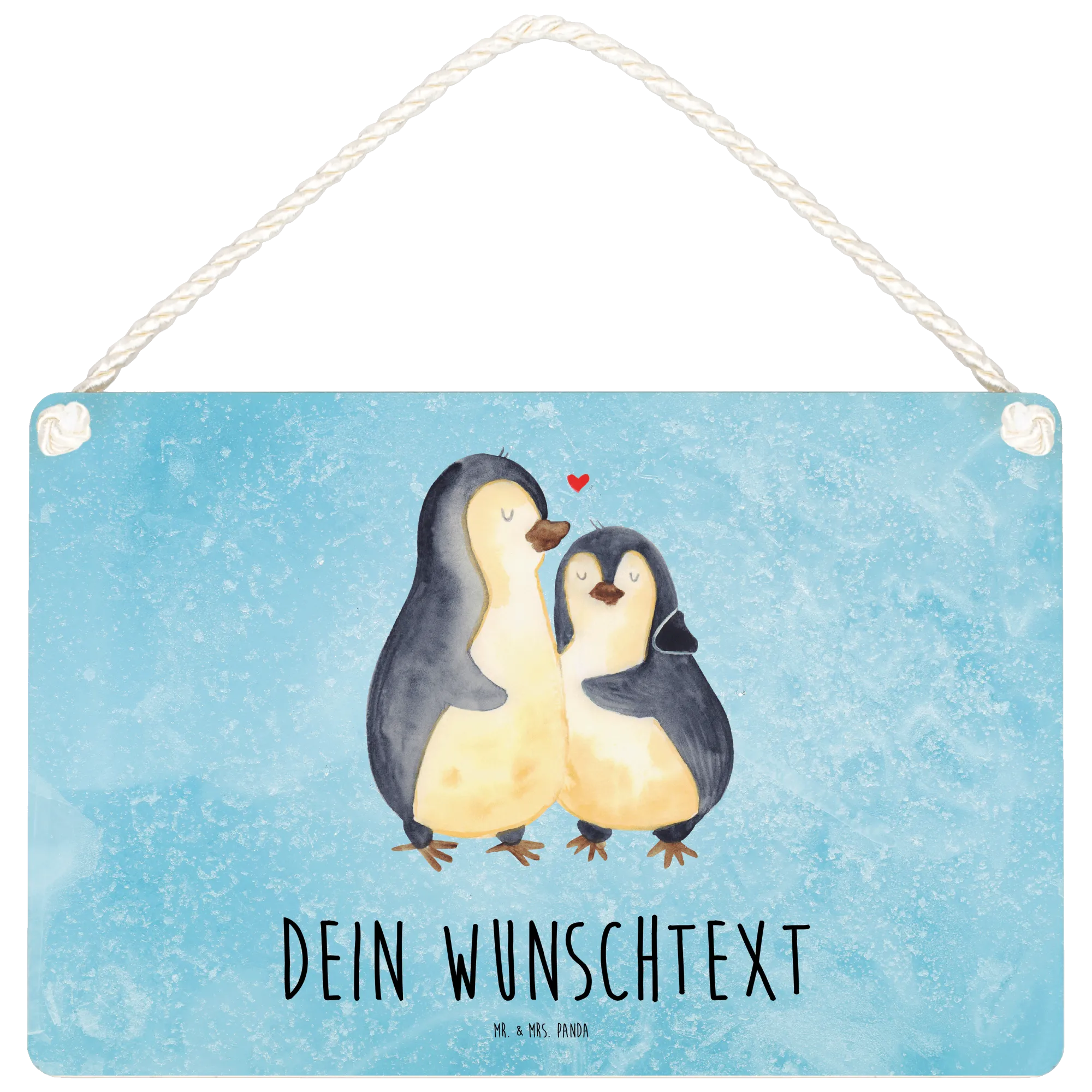Personalised decorative sign Penguin embrace - DIN A6 - White