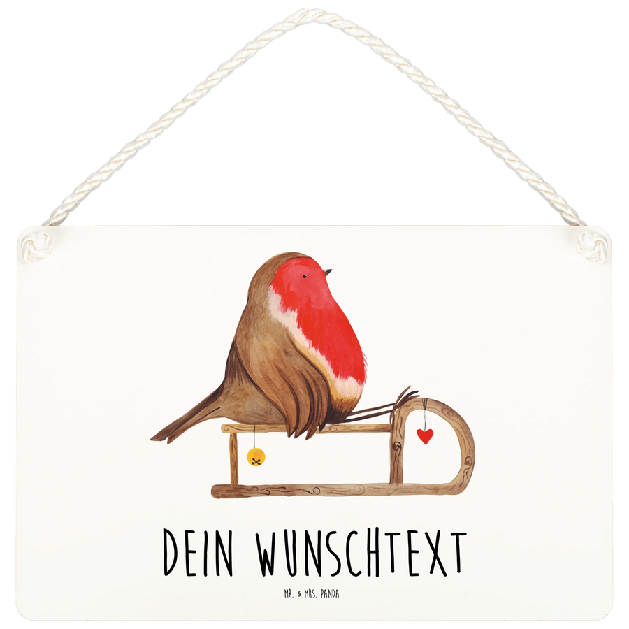 Personalised decorative sign robin Sleds - DIN A6 - White