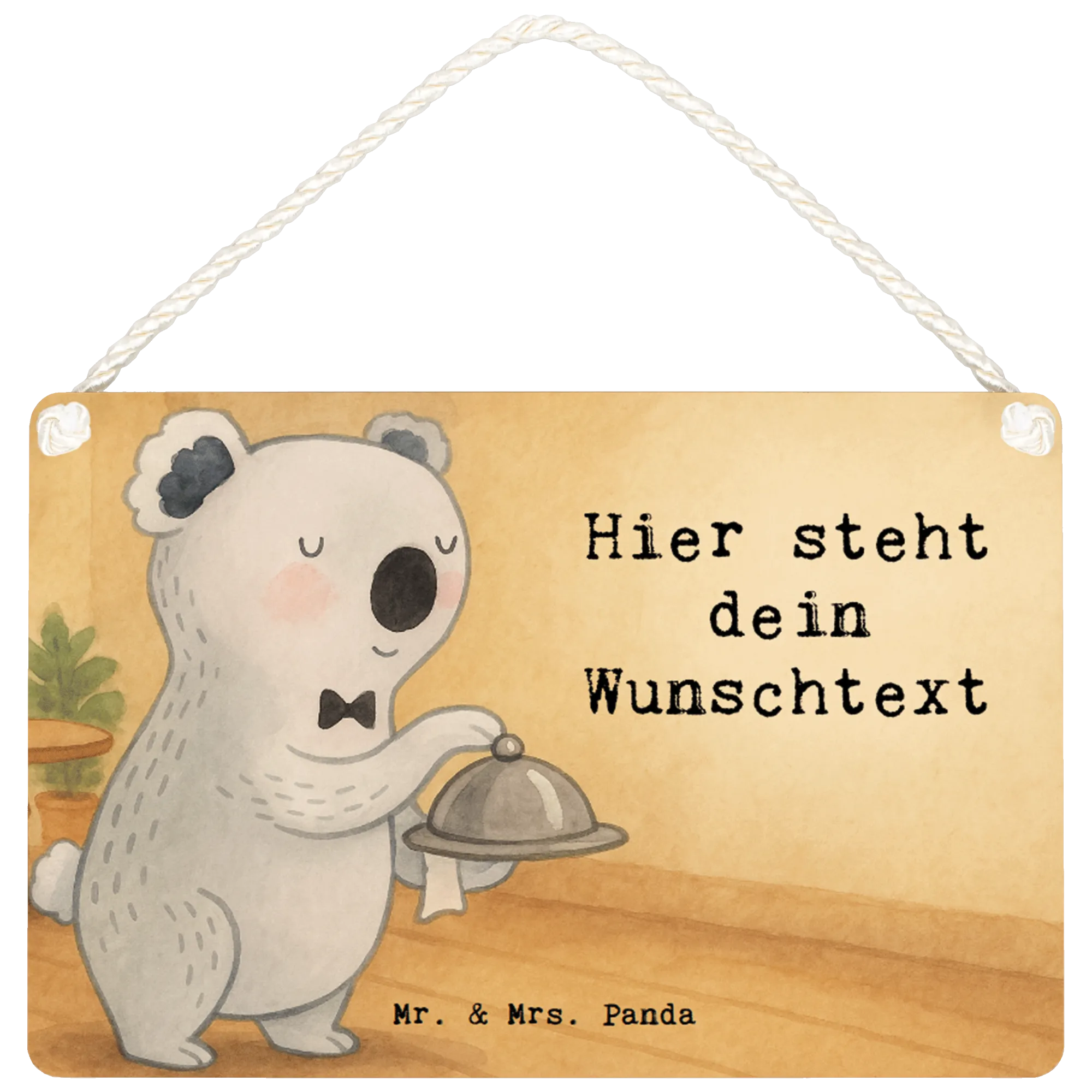 Hol dir das besondere Etwas für deine Einrichtung mit unserem personalisierten Deko Schild von Mr. & Mrs. Panda! In den Maßen 210 mm x 148 mm ist dieses Schild perfekt geeignet, um deinen Eingangsbereich, die Küche oder das Bad stilvoll zu dekorieren. Hergestellt aus hochwertiger beschichteter Holzfaser, kannst du es mit deinem Wunschtext oder Namen versehen und somit dein individuelles Stück kreieren. Der edle Druck sorgt für eine lange Haltbarkeit der Farben, während die spezielle Beschichtung das Schild widerstandsfähig macht. Durch die mitgelieferte gedrehte Kordel ist das Anbringen an der Wand ein Kinderspiel. Dieses Schild ist die ideale Wahl für alle, die ihr Zuhause mit Liebe und Persönlichkeit gestalten möchten - auch ein originelles Geschenk für jeden Anlass!