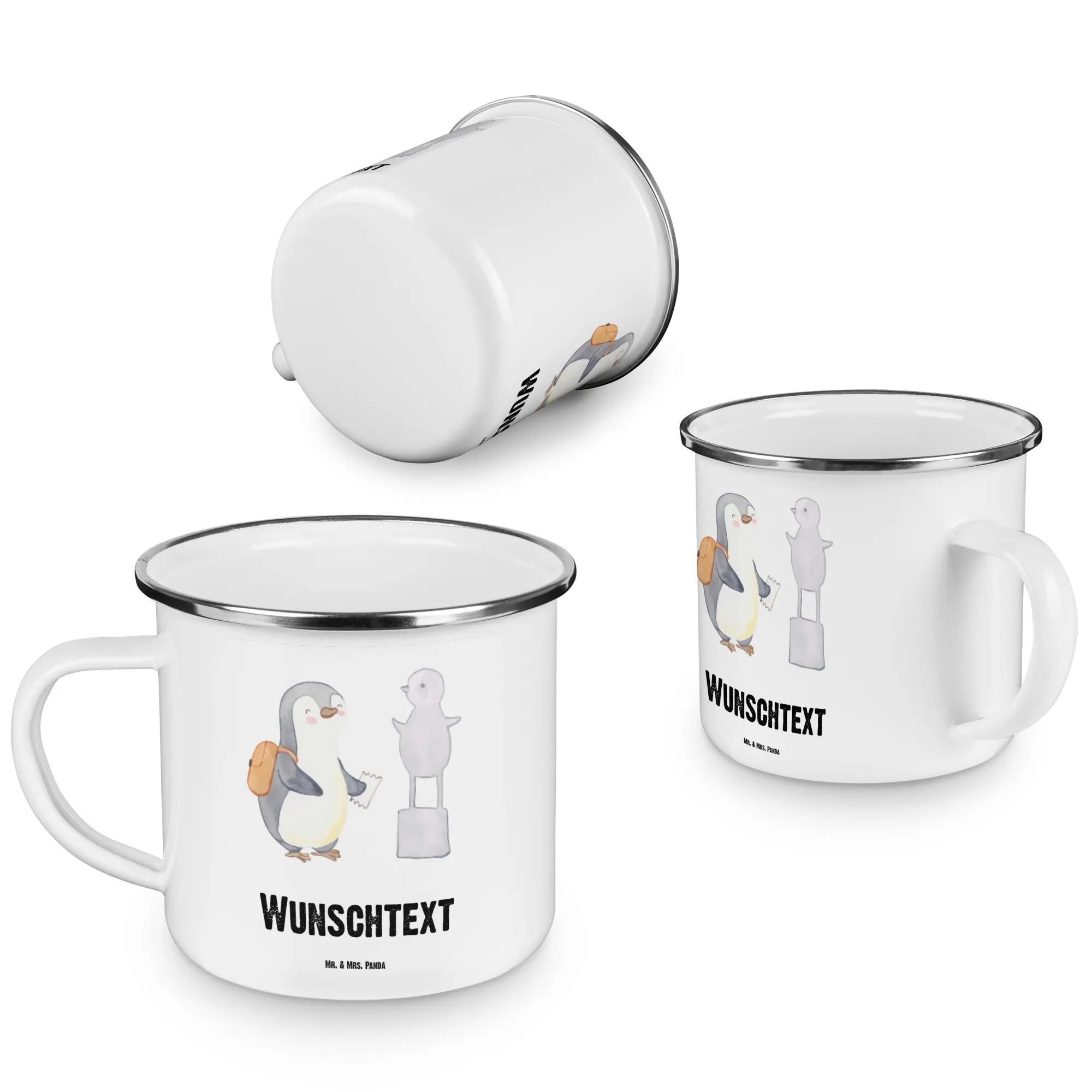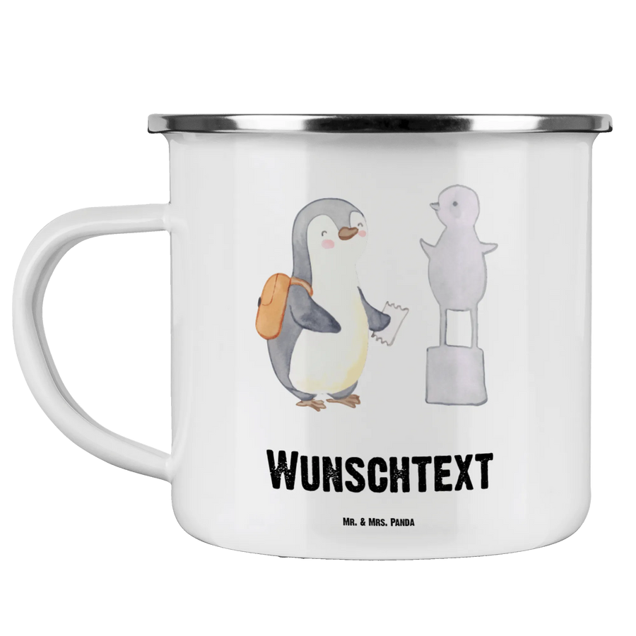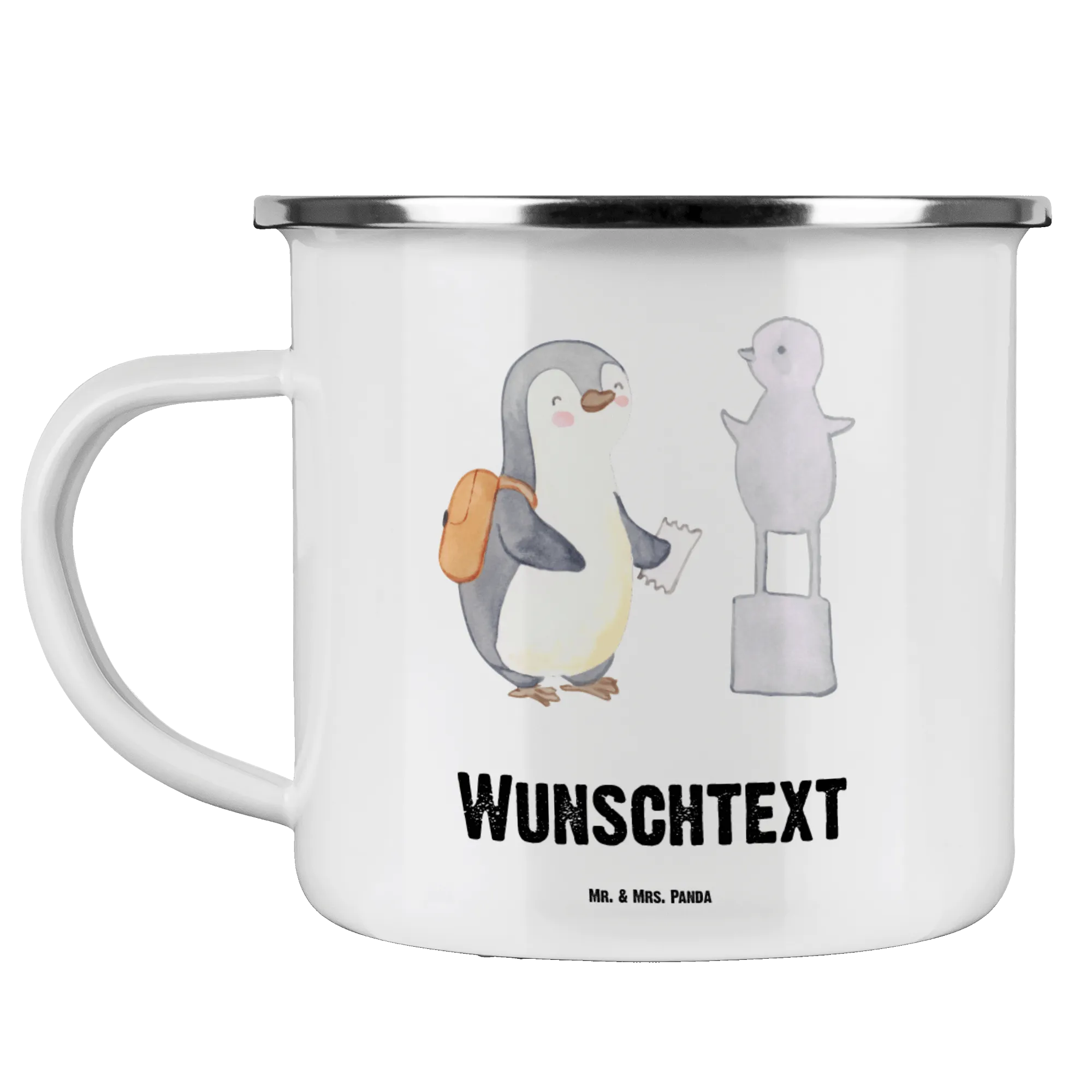 Personalised enamel cup penguin to visit a museum Gift, sport, hobby, giving, thank you, award, profit, athlete, Visit museum, museums