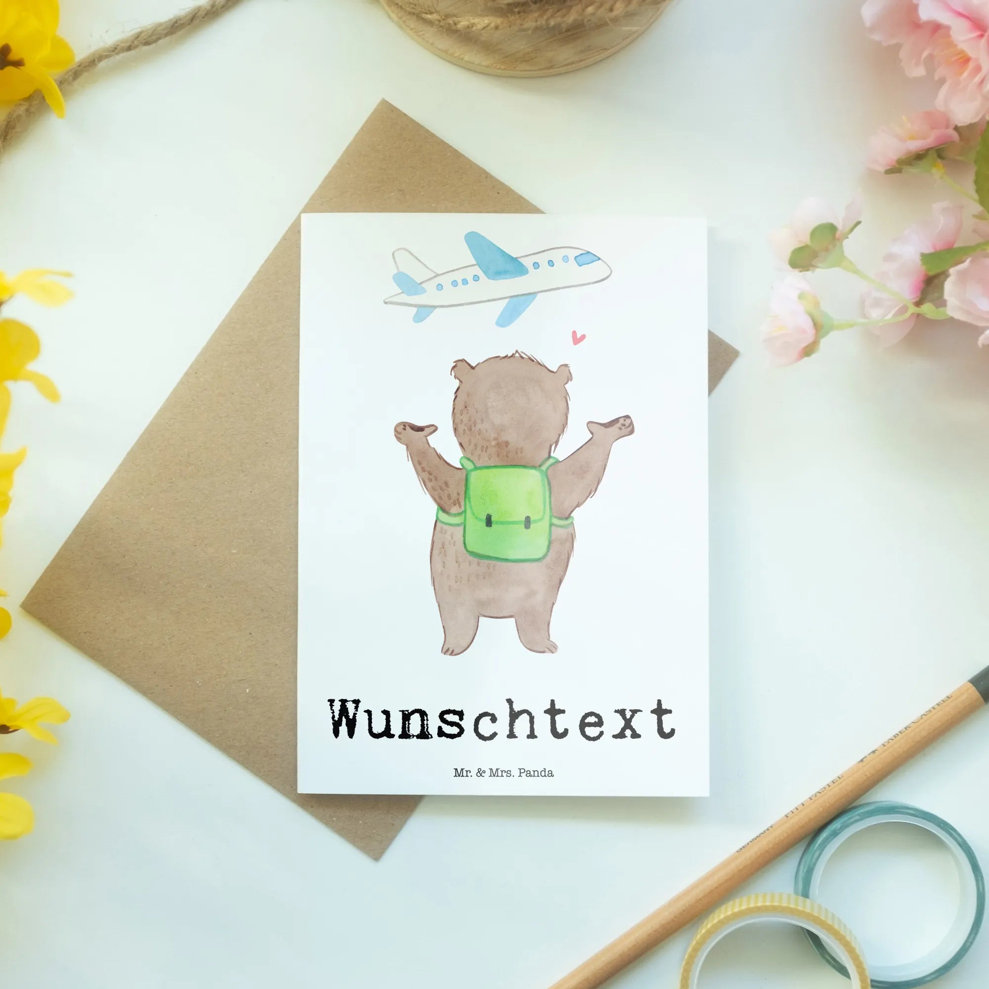 Meet our charming bear, arms outstretched, dreaming of all the adventures with you! This delightful character holds a unique green bag while gazing at a whimsical airplane, with a heart floating above them both. The slogan, 'Ich möchte mit dir die Welt bereisen, weil ich mit dir an meiner Seite noch so viel mehr erleben will,' encapsulates the spirit of love intertwined with exploration. This motif is not just a whimsical design; it’s a perfect Valentine's Day gift or lovely anniversary surprise that speaks directly to the heart. Let this bear remind you both that every journey is sweeter with love by your side!
