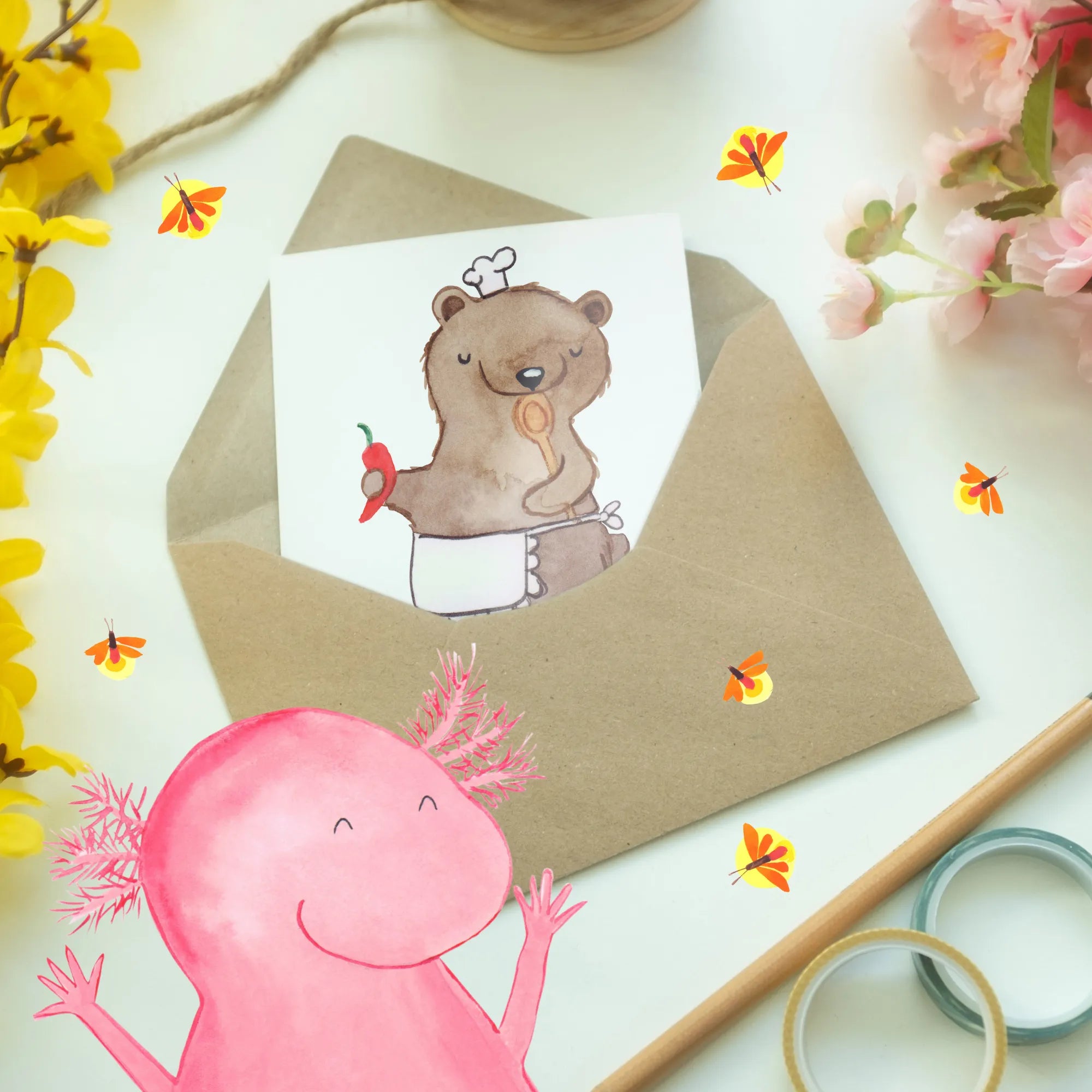 Say hello to our delightful bear, the culinary enthusiast! Sporting a playful chef’s hat, he balances a fiery chili in one paw and a trusty spoon in the other, exuding a zest for cooking. Here at Mr. & Mrs. Panda, we cherish the idea that cooking is not just a chore but an exploration filled with joy. Our slogan, 'Is life even worth living if you're not a cook?' serves as a reminder that each meal is an opportunity to share love and create lasting memories. Let this charming motif inspire you to dive into the recipes, explore new cuisines, and bring your loved ones together around the dinner table. Remember, cooking is a language of love, and every dish tells a story!