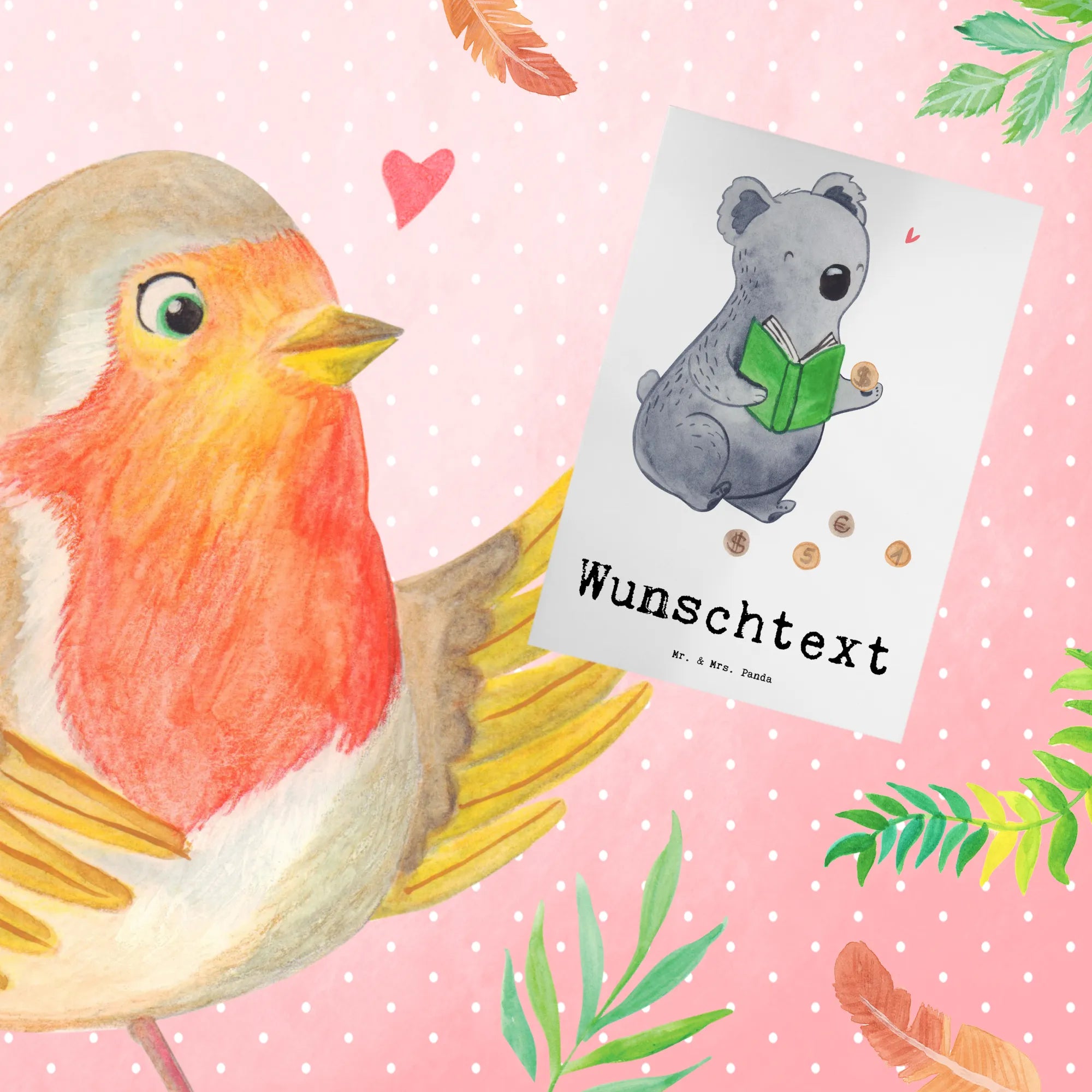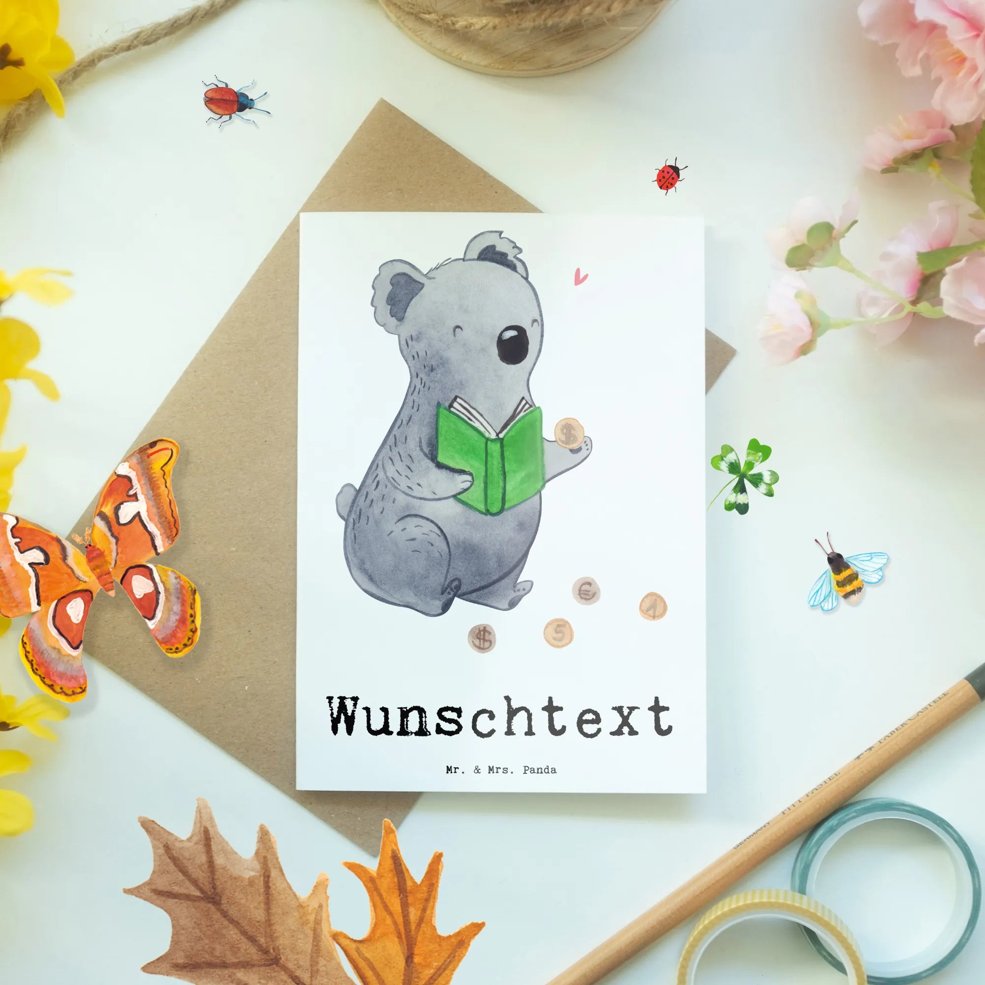 Personalised greetings card Koala bear collect coins
