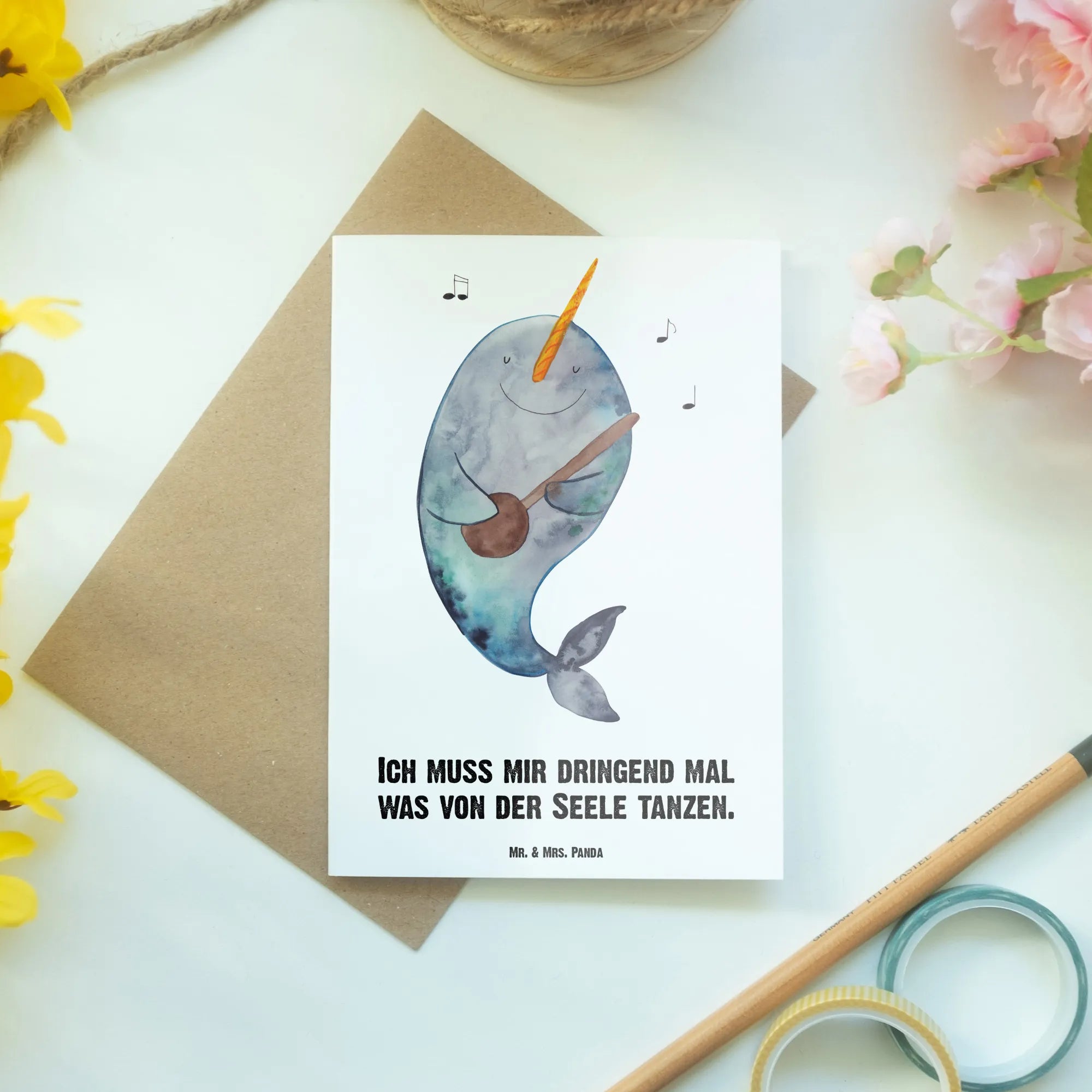 Dive into a world of creativity with this enchanting motif featuring a narwhal playing his guitar, beaming with happiness! The gentle blue and gray watercolors blend effortlessly in this design, encapsulating the soothing essence of the ocean. Our narwhal is here to remind us that dancing can be a powerful solution to the frustrations we face. Seemingly lost in the joy of music, he embodies our feeling that, 'Ich muss mir dringend mal was von der Seele tanzen.' Let this piece inspire you to find your groove amidst challenges, knowing that happiness can be found in the simple act of dancing.