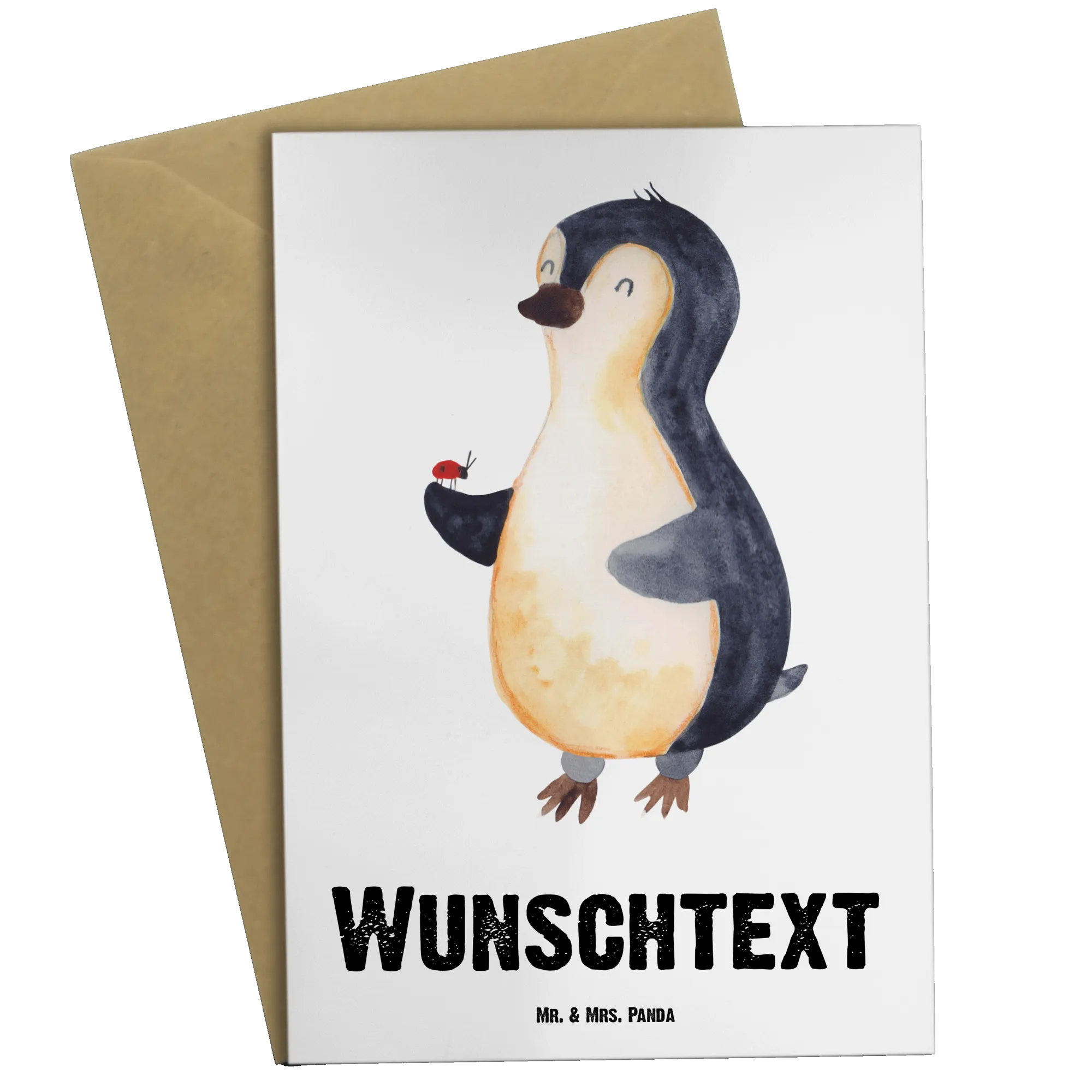 Personalised greetings card Penguin ladybug
