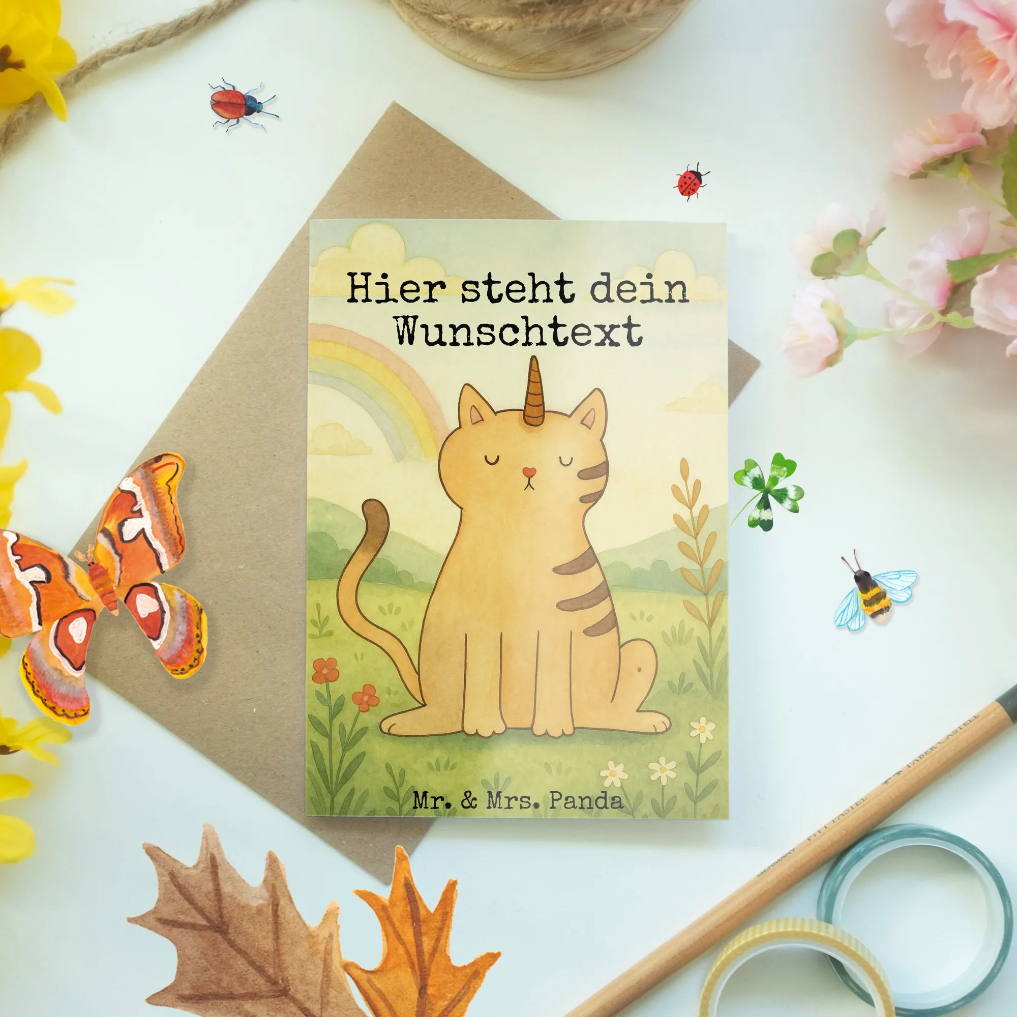 Personalised greetings card unicorn Cat Design