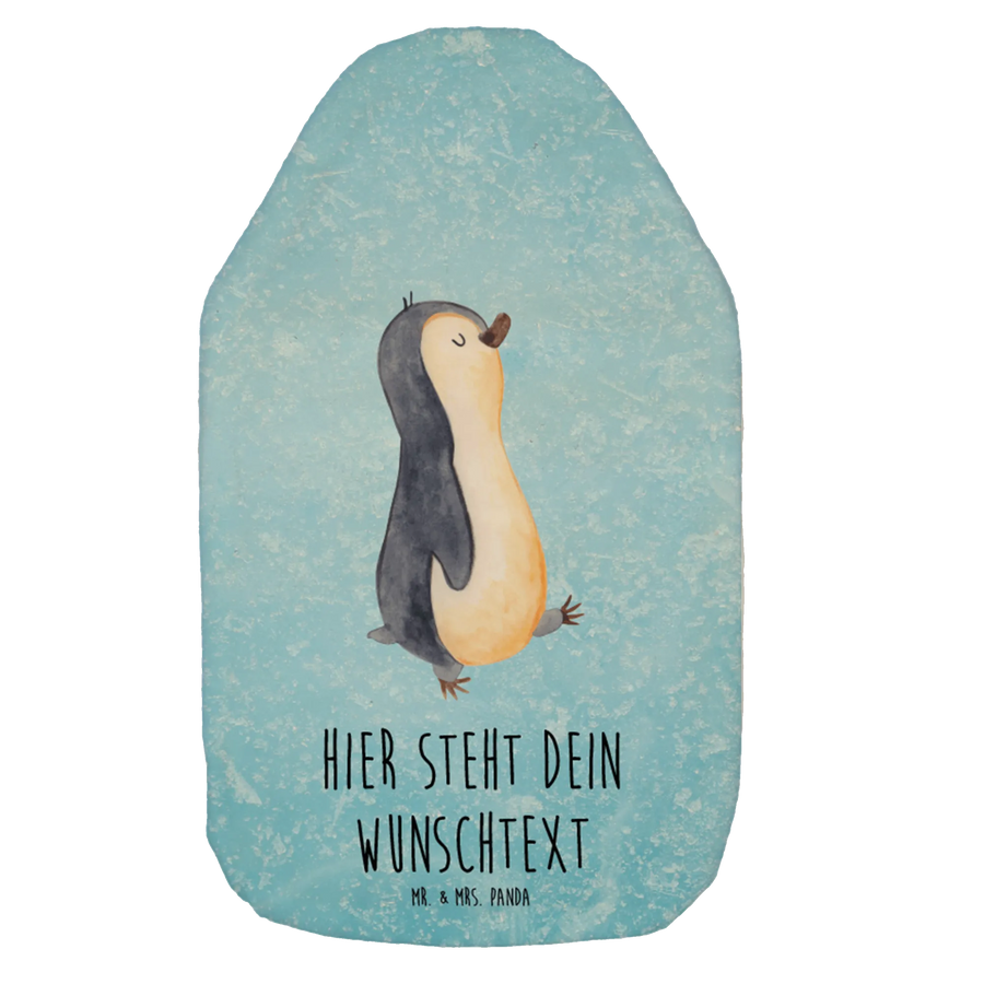 Personalised hot water bottle Penguin march - Ice Blue