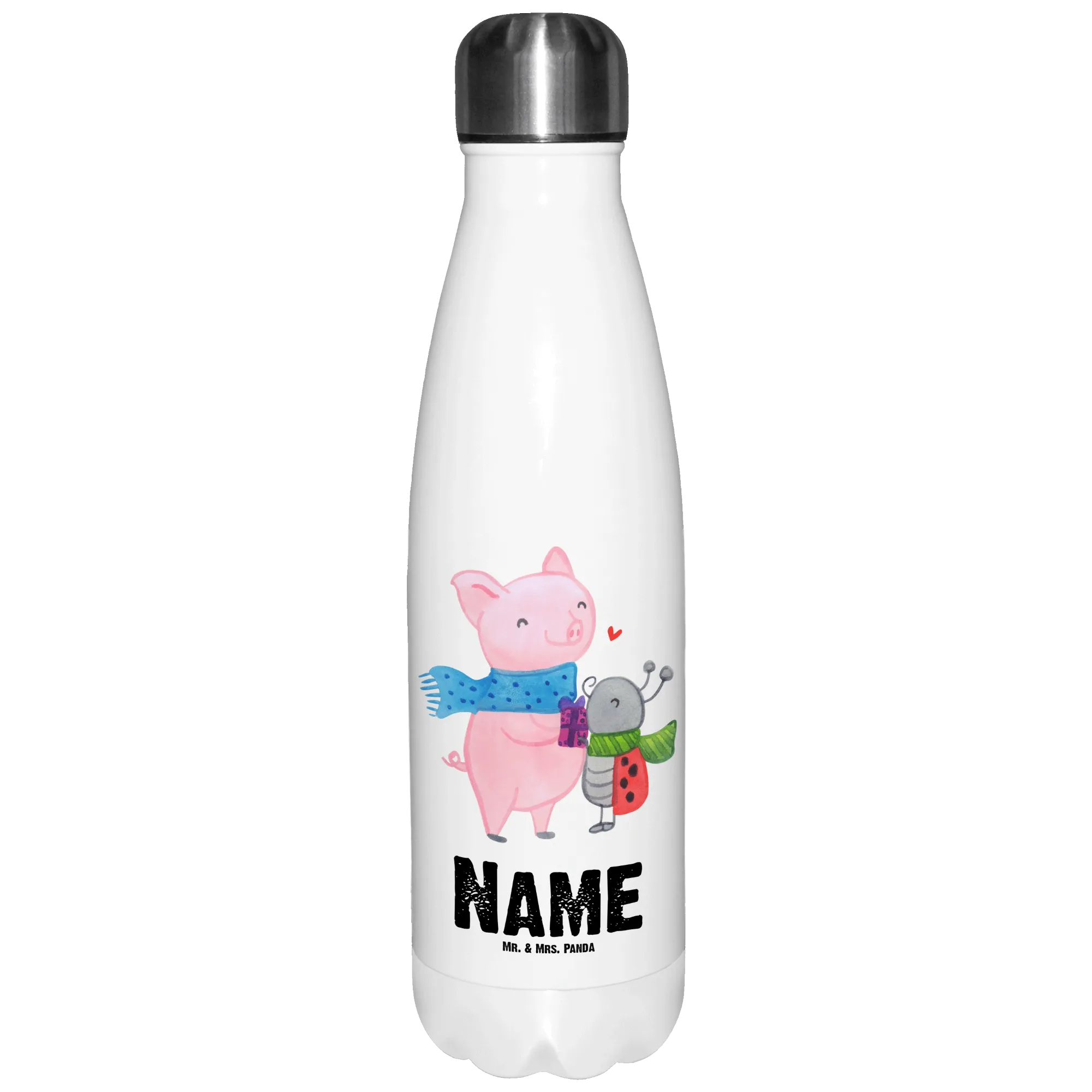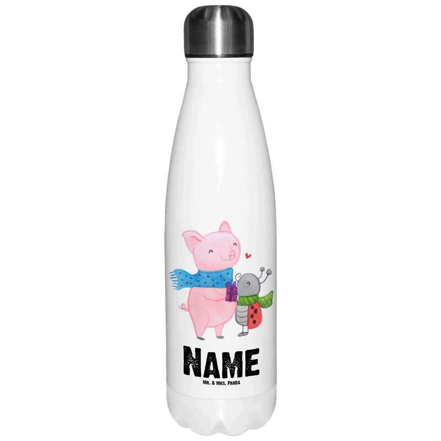 Dive into the warmth of the Toasty Pig Smörle motif, where joy meets coziness! Imagine our charming pig, wrapped in a delightful blue scarf, enjoying a hot cup of Glühwein. With the adorable ladybug at his side, donned in a striped green scarf, they personify the friendship and warmth that make winter delightful. The heart floating above them signifies the love surrounding every cozy moment shared between friends. This design isn't just an artwork; it's a celebration of winter fun and the delightful drinks that come with it. As we like to remind you, 'When the weather outside is frightful, Glühwein is so delightful.' This motif serves as a sweet reminder to embrace those special moments with loved ones, making for an ideal gift for every Glühwein lover!