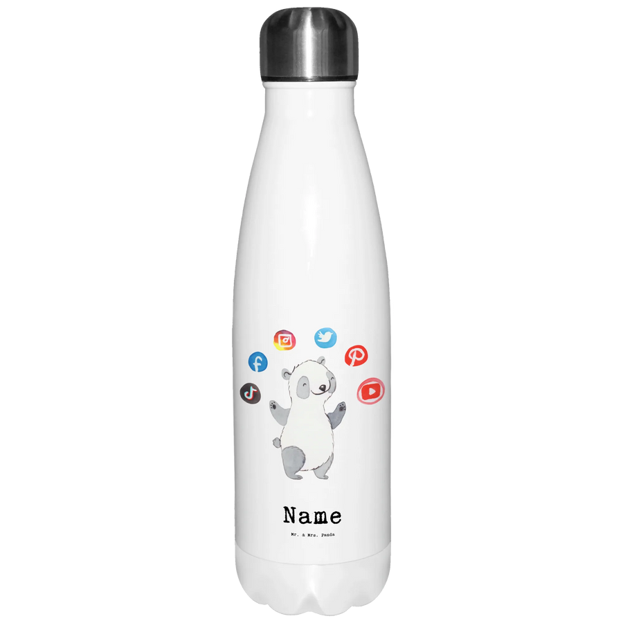 Introducing our delightful personalised insulated bottle from Mr. & Mrs. Panda! This charming piece is perfect for keeping your drinks at just the right temperature, whether you're sipping hot coffee on a chilly morning or enjoying refreshing iced tea during a sunny outing. Crafted from high-quality double-walled stainless steel, this bottle features a sleek design with adorable prints and fun quotes from our beloved characters. Measuring at 270 mm (11 inches) tall and 70 mm (3 inches) in diameter, it has a generous capacity of 500 ml (17 oz), making it an ideal companion for work, school, or your next adventure! Lightweight yet robust, it’s designed to withstand bumps and drops while fitting snugly in your bag. With our convenient screw cap, you can enjoy peace of mind while you're on the go. Plus, this insulated bottle ensures that your hot drinks stay hot for hours and your cold drinks stay chilly, perfect for hikes, picnics, or just hanging out at home. Remember to hand wash it to keep it looking fabulous, and avoid any harsh scrubbing to maintain its shine. Get ready to personalize yours with your chosen name or message, making it truly one-of-a-kind!