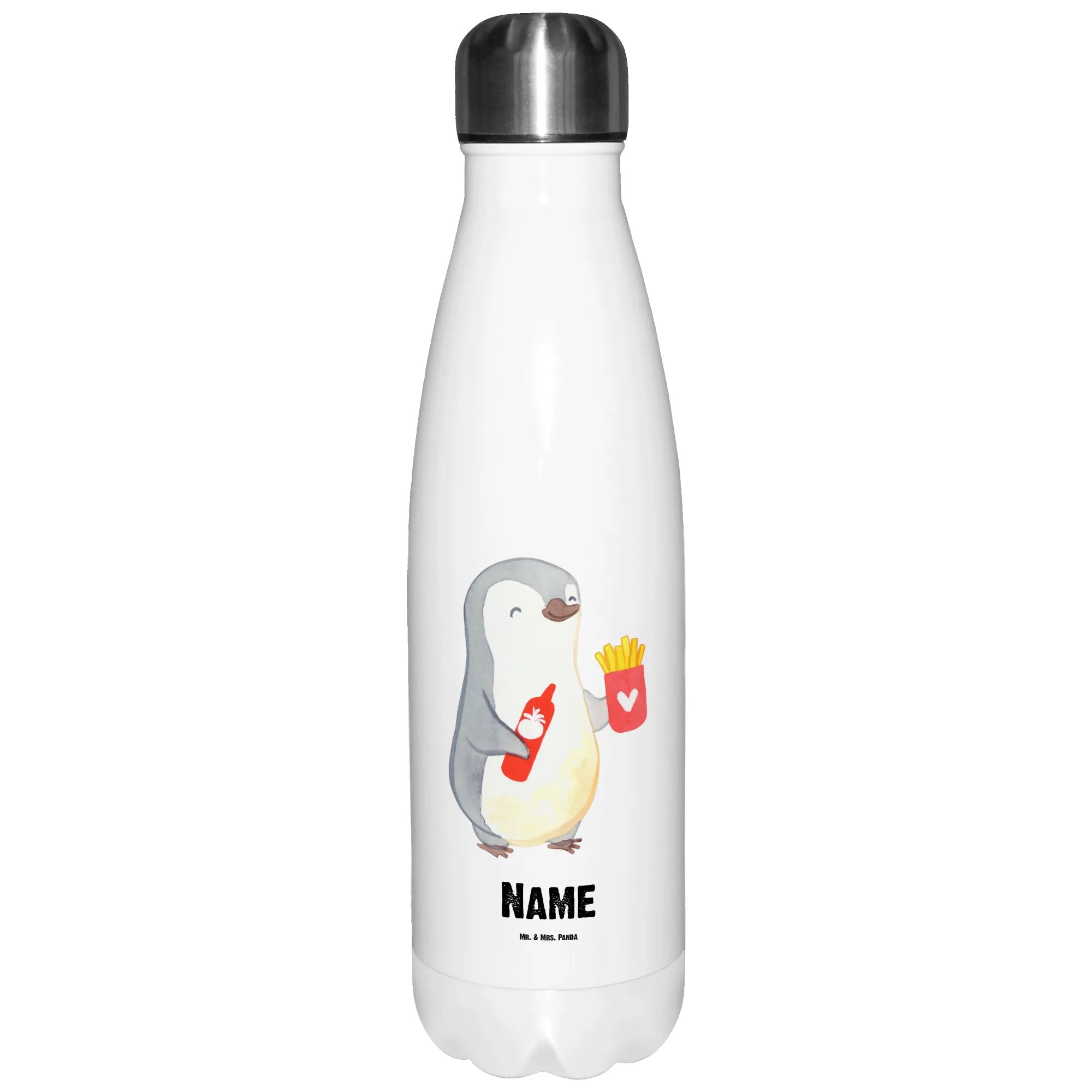 Meet our charming penguin, the ultimate ambassador of sharing joy! With a joyful heart, he clutches a cup of fries while balancing a ketchup bottle, bringing a cheerful vibe to any space. The slogan 'Mit dir würde ich sogar meine Pommes teilen' encapsulates the spirit of love and togetherness in the most whimsical way. This lovely motif makes a terrific gift for Valentine’s Day or an anniversary celebration, reminding us how special those small, shared moments can be. Each glance at this penguin will warm your heart and evoke the happiness of serving fries together on cozy date nights. It’s an adorable way to show appreciation for your partner, bringing a smile with every reminder of sweet connections.