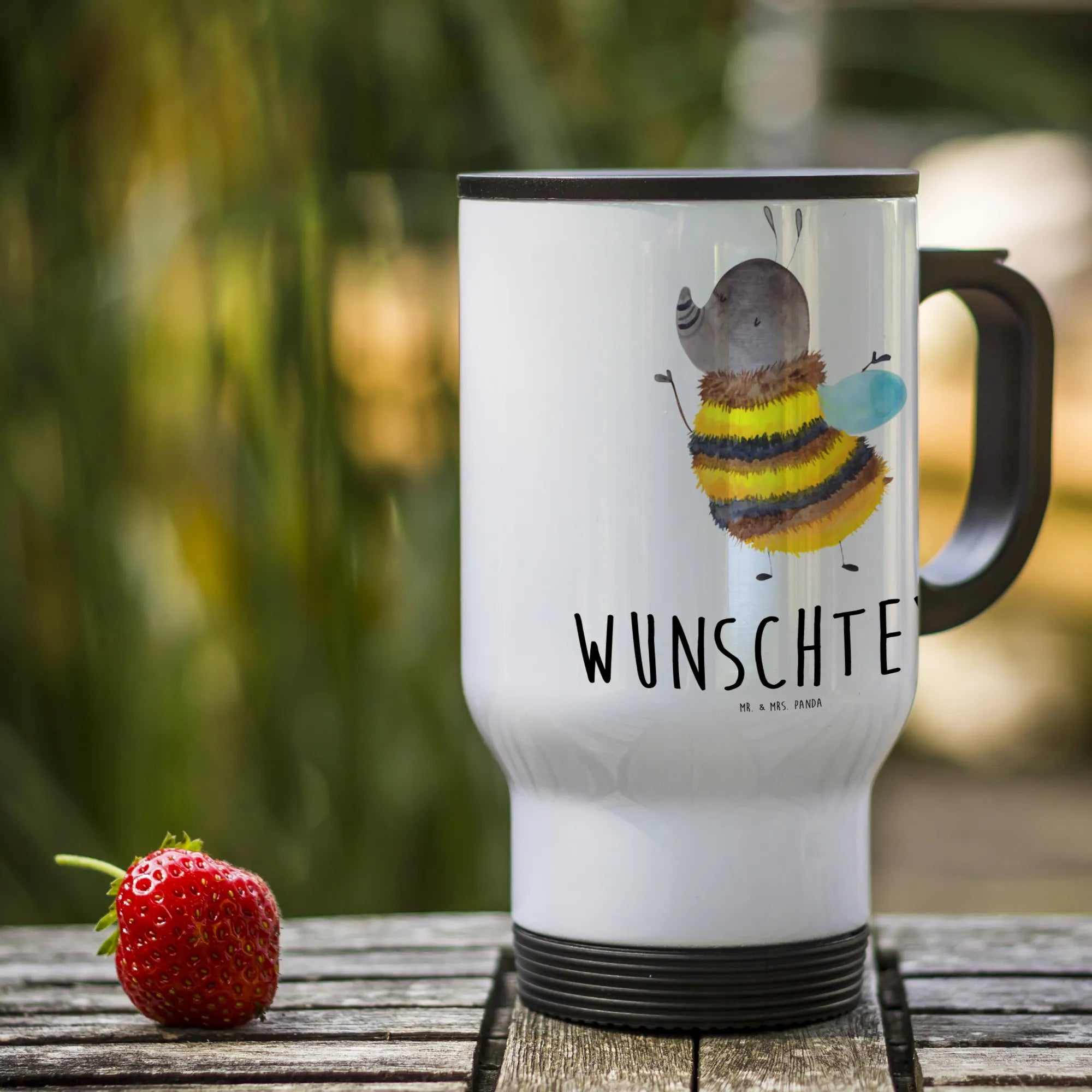 Personalised insulated mug bumblebee fluffy