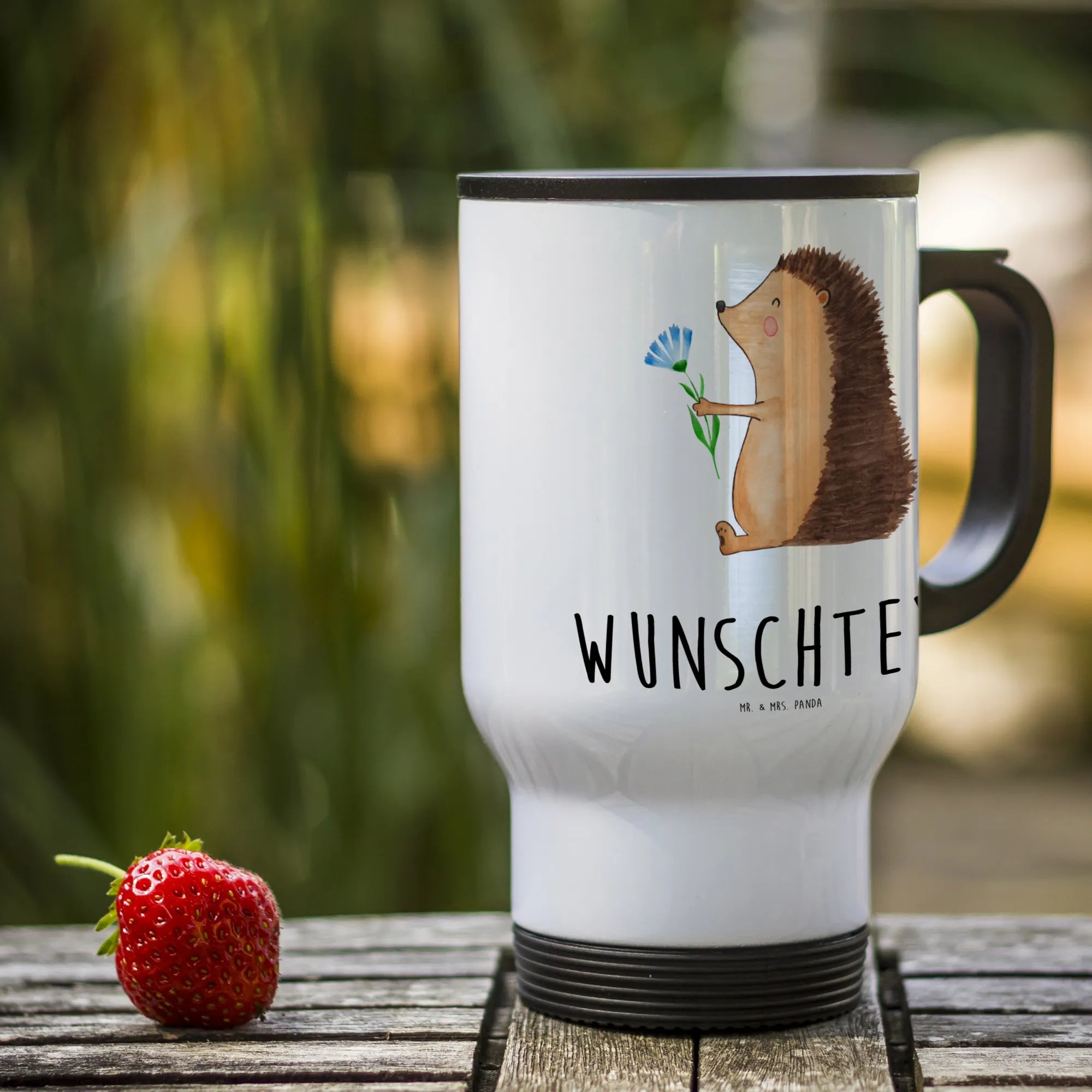 Personalised insulated mug Hedgehog Flower – Mr. & Mrs. Panda