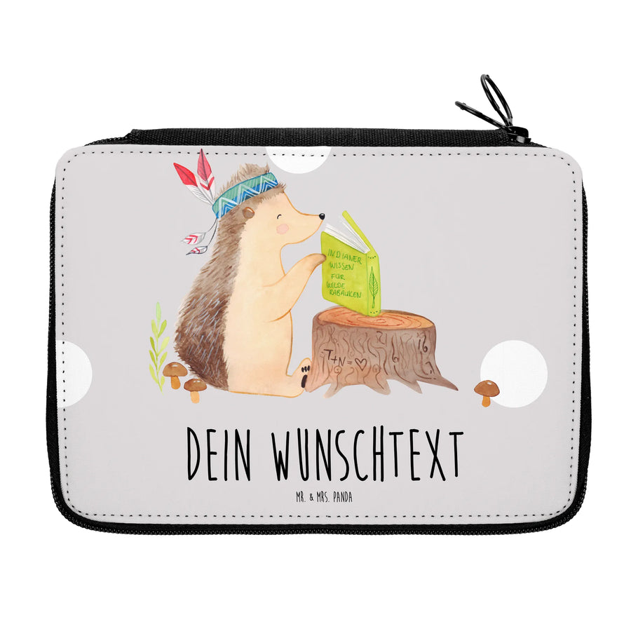 Personalised leather folder Hedgehog feather headdress - Grey Pastel