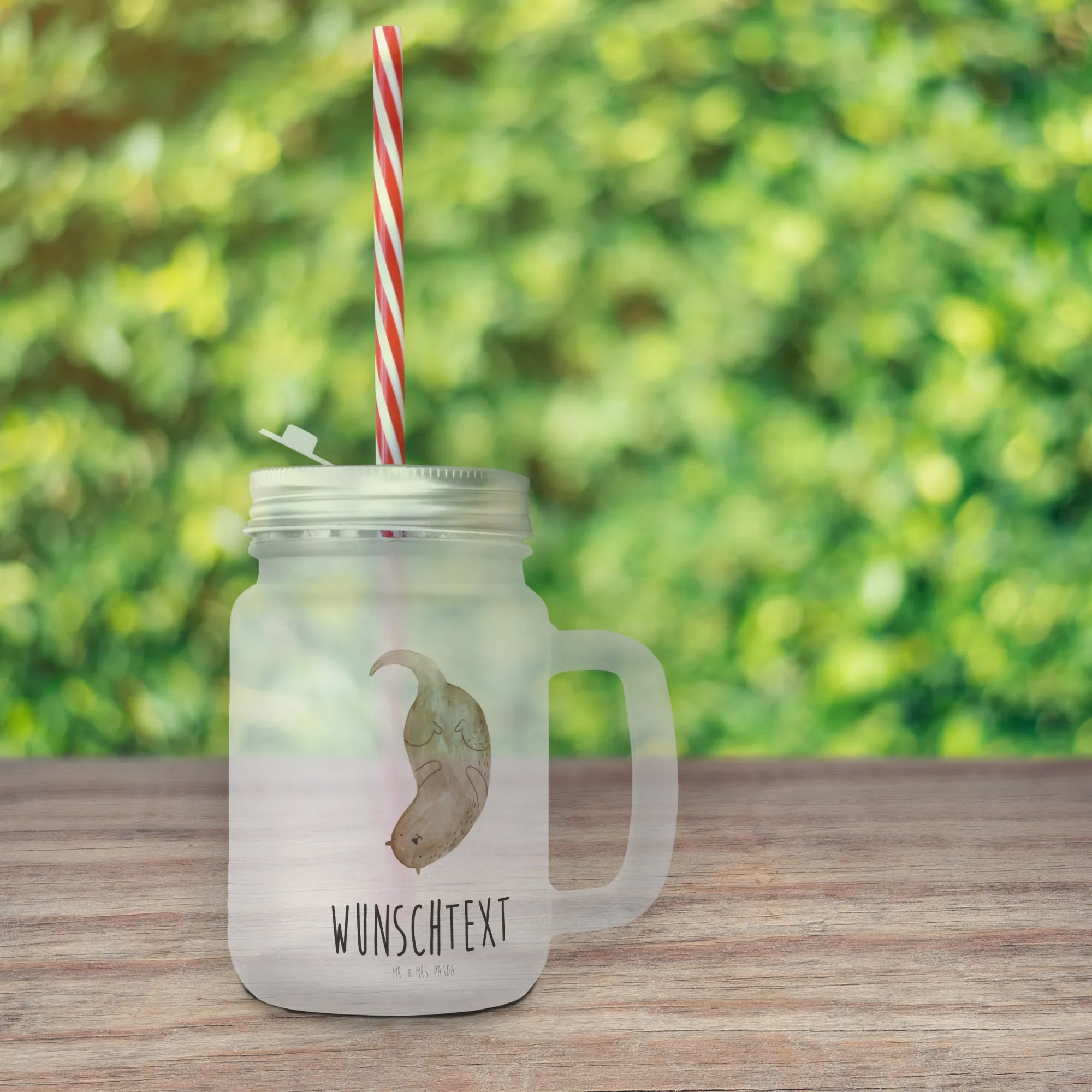 Personalised mason jar drinking glass otter upside down