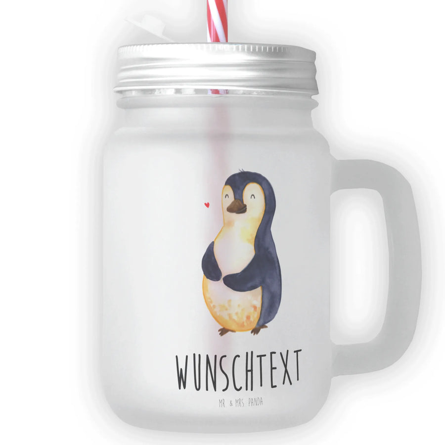 Personalised mason jar drinking glass Penguin diet