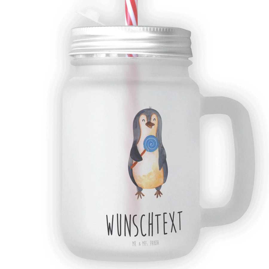Personalised mason jar drinking glass Penguin lollipop